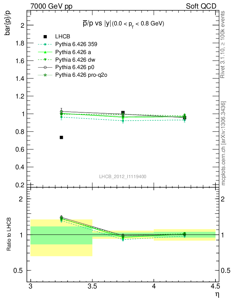 Soft QCD (inelastic) : Identified Particles : Ratios : pbar/p vs |y|