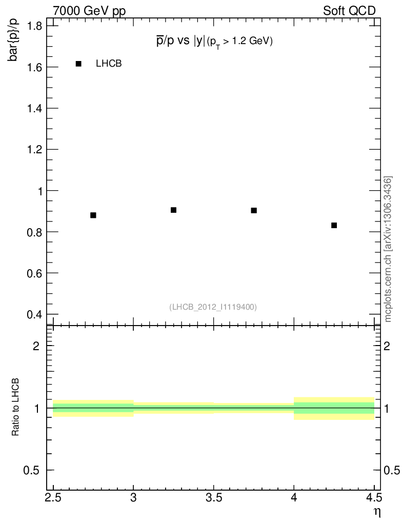 Soft QCD (inelastic) : Identified Particles : Ratios : pbar/p vs |y|