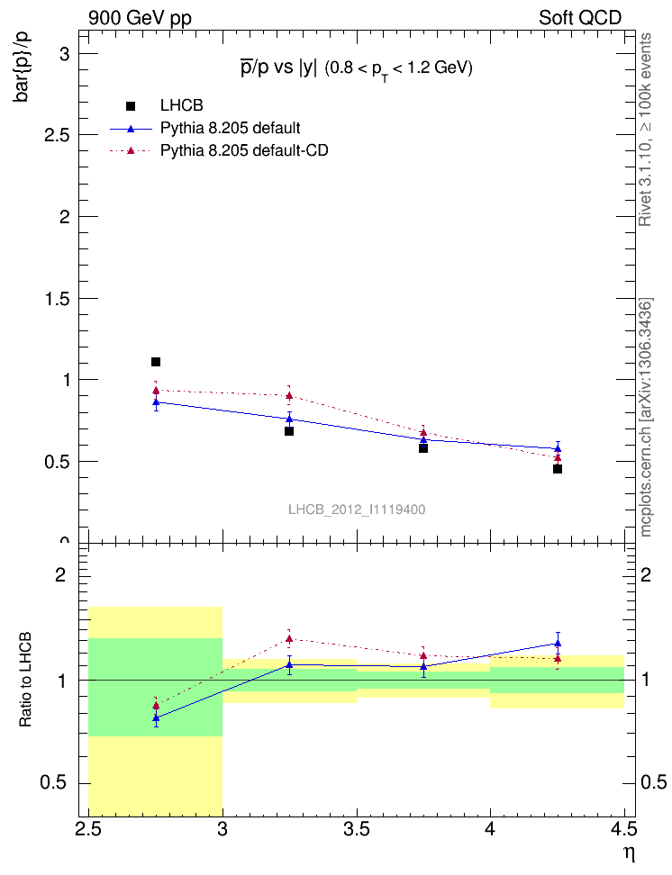 Soft QCD (inelastic) : Identified Particles : Ratios : pbar/p vs |y|