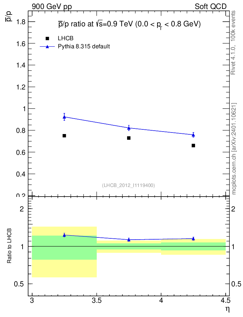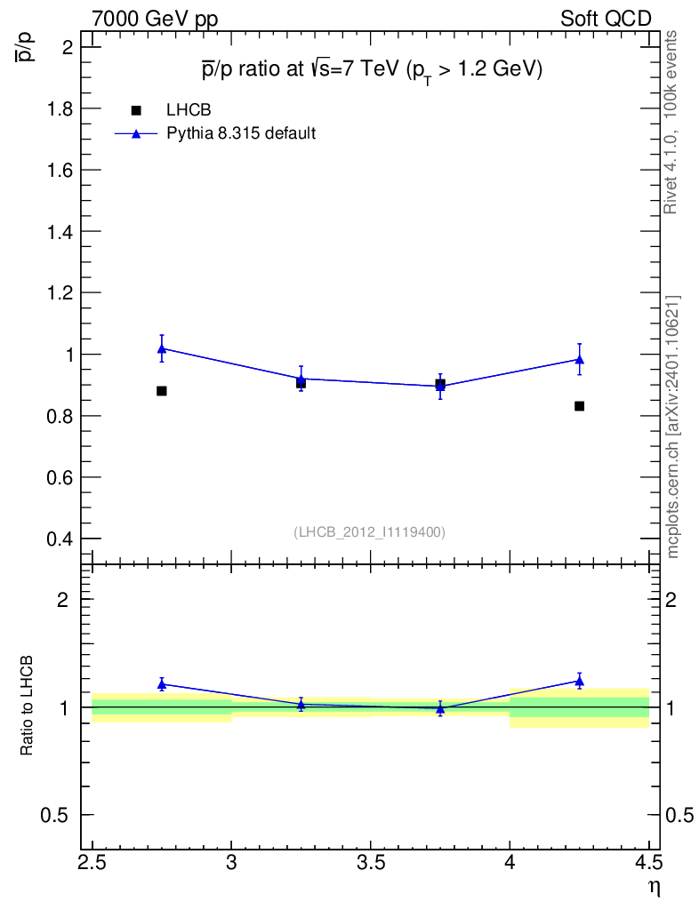 Soft QCD (inelastic) : Identified Particles : Ratios : pbar/p vs |y|