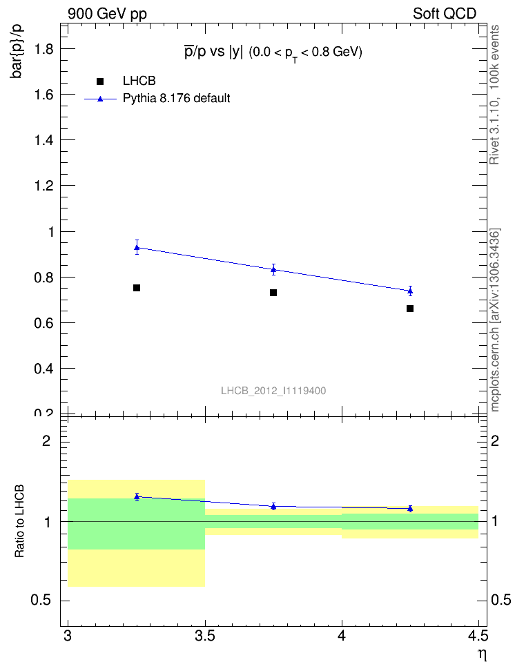 Soft QCD (inelastic) : Identified Particles : Ratios : pbar/p vs |y|