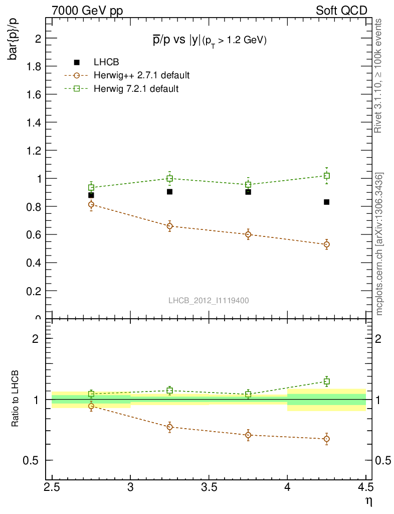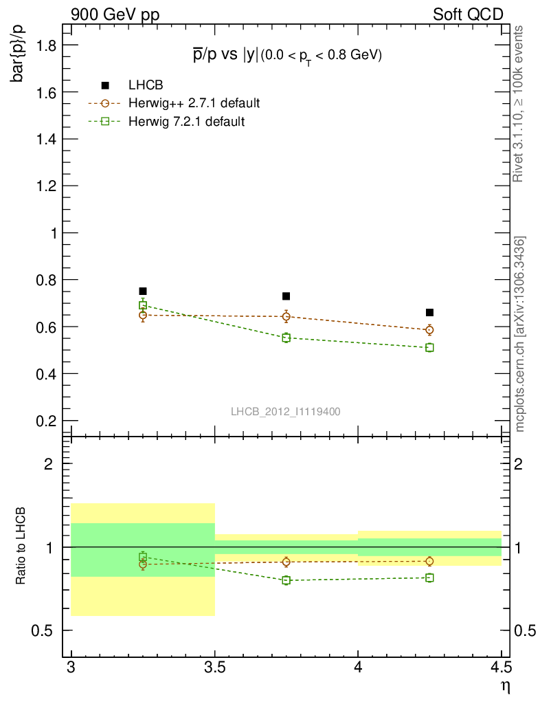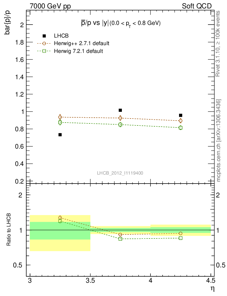 Soft QCD (inelastic) : Identified Particles : Ratios : pbar/p vs |y|