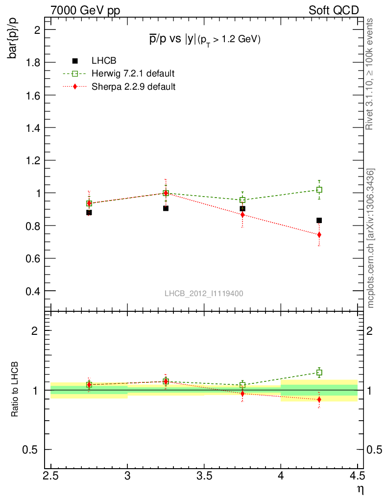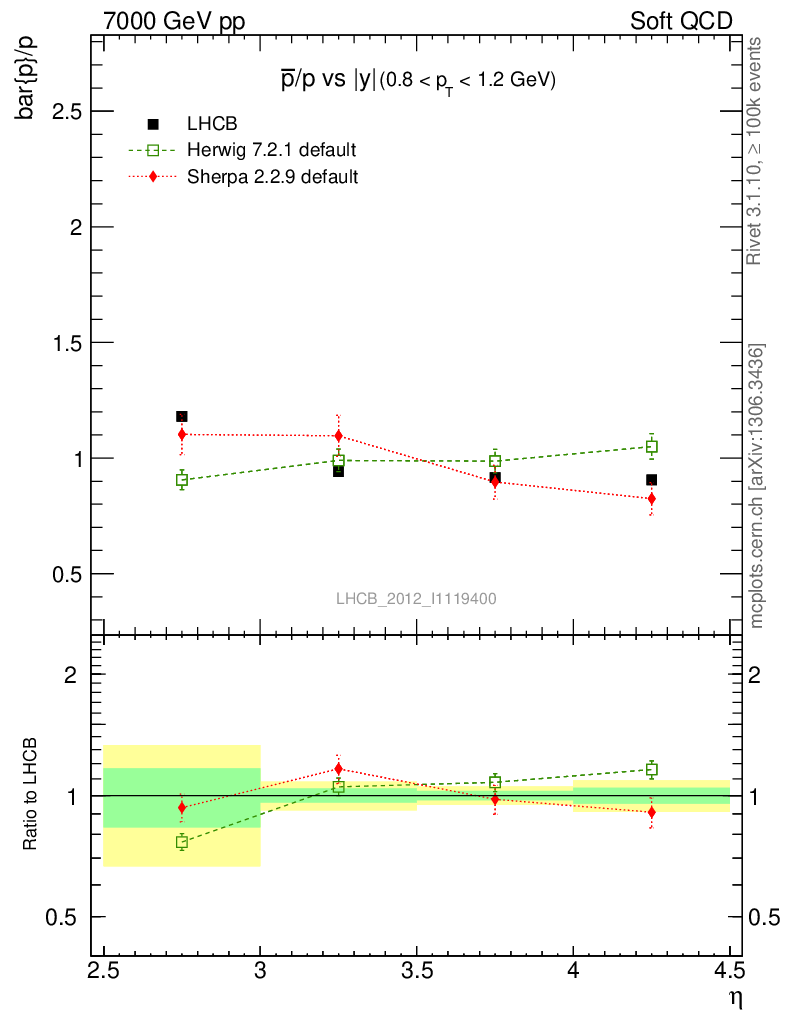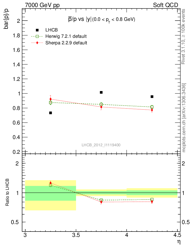 Soft QCD (inelastic) : Identified Particles : Ratios : pbar/p vs |y|