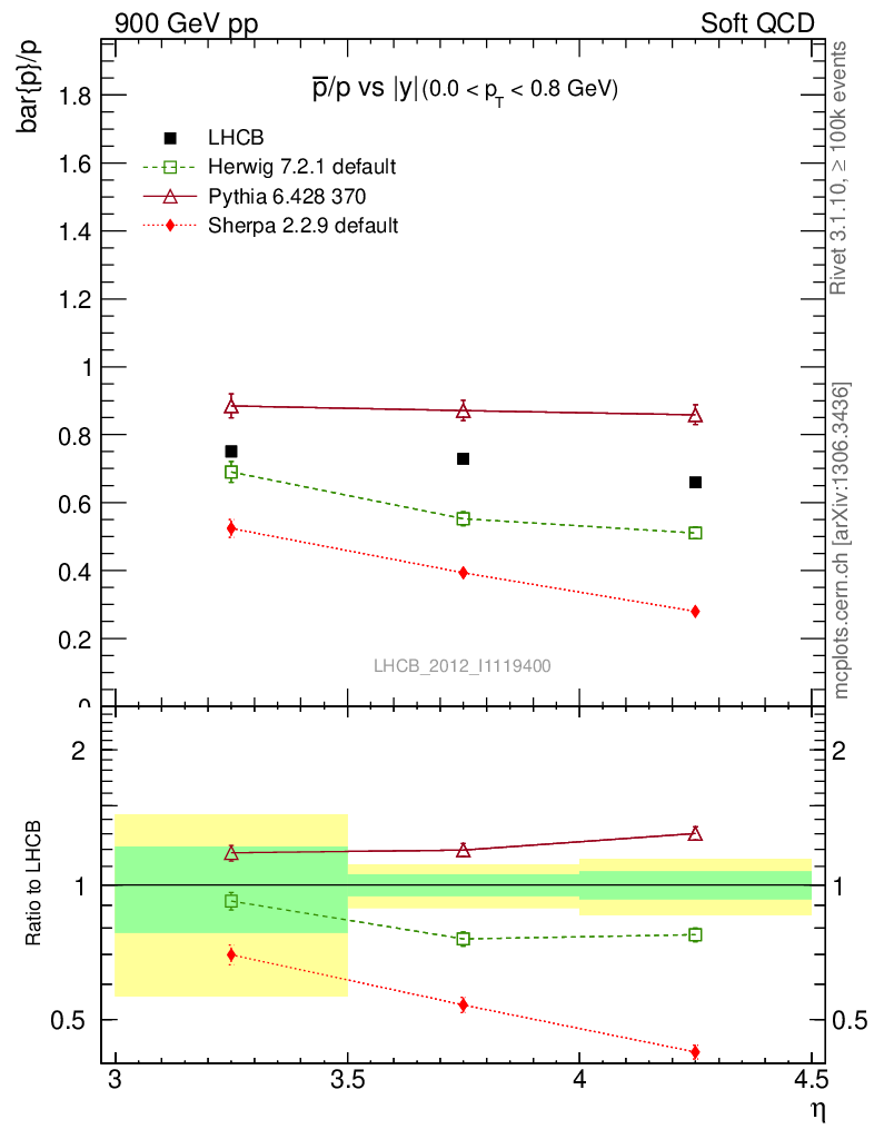 Soft QCD (inelastic) : Identified Particles : Ratios : pbar/p vs |y|