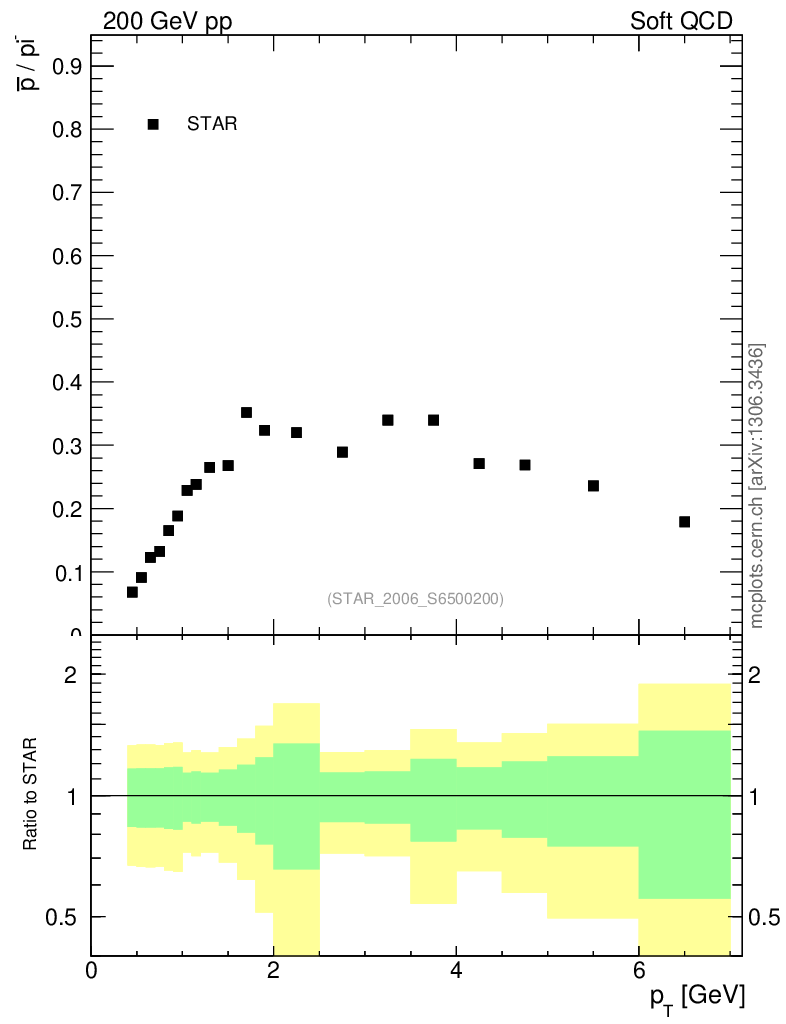 Soft QCD (inelastic) : Identified Particles : Ratios : pbar/π vs pT