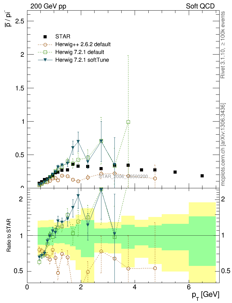Soft QCD (inelastic) : Identified Particles : Ratios : pbar/π vs pT