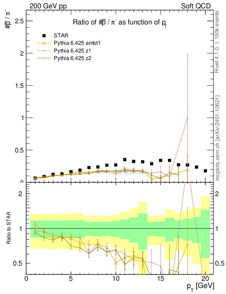 Soft QCD (inelastic) : Identified Particles : Ratios : pbar/π vs pT