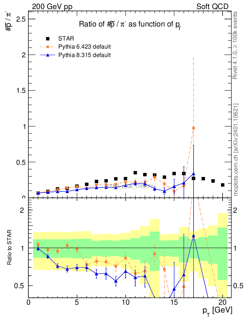 Soft QCD (inelastic) : Identified Particles : Ratios : pbar/π vs pT