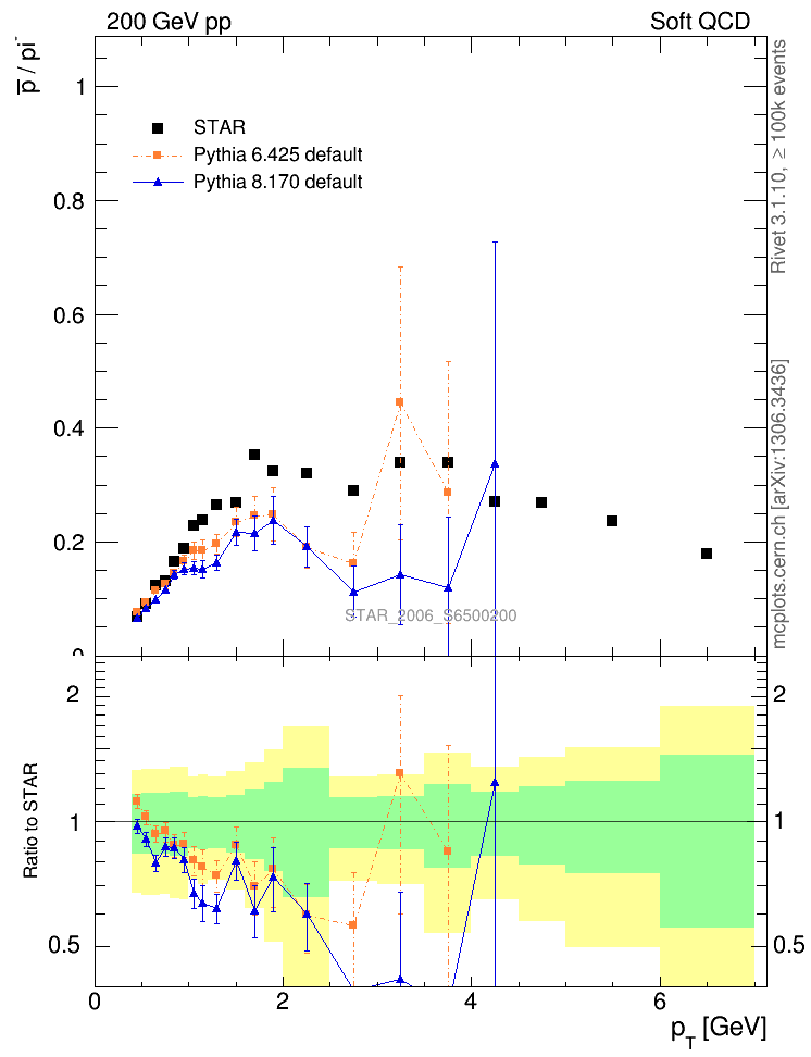 Soft QCD (inelastic) : Identified Particles : Ratios : pbar/π vs pT