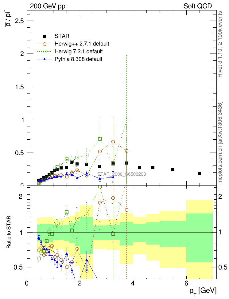 Soft QCD (inelastic) : Identified Particles : Ratios : pbar/π vs pT
