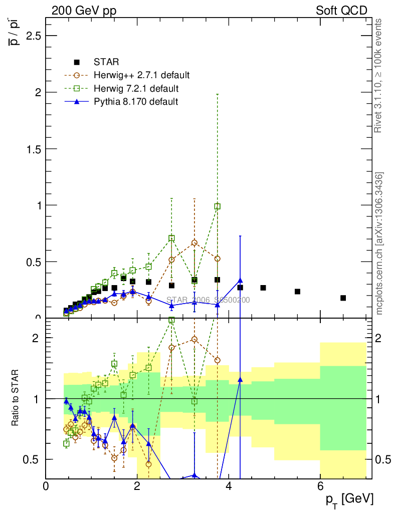 Soft QCD (inelastic) : Identified Particles : Ratios : pbar/π vs pT