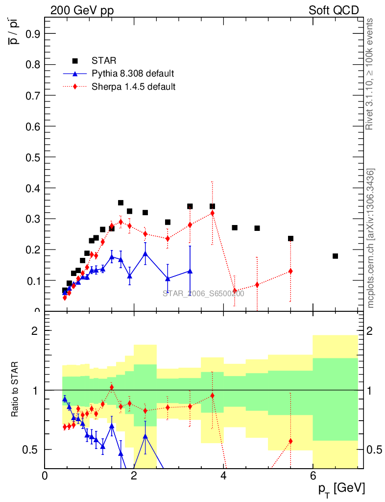 Soft QCD (inelastic) : Identified Particles : Ratios : pbar/π vs pT