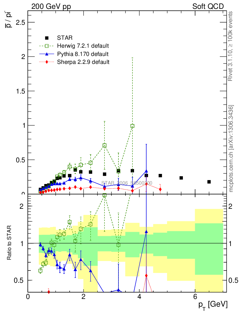 Soft QCD (inelastic) : Identified Particles : Ratios : pbar/π vs pT