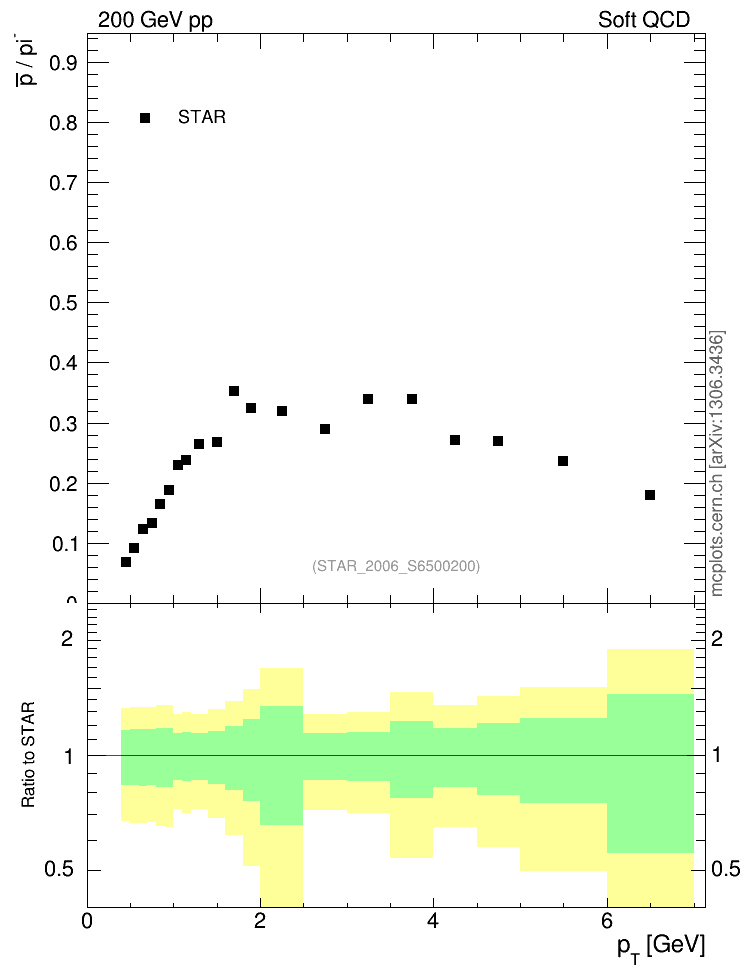 Soft QCD (inelastic) : Identified Particles : Ratios : pbar/π vs pT