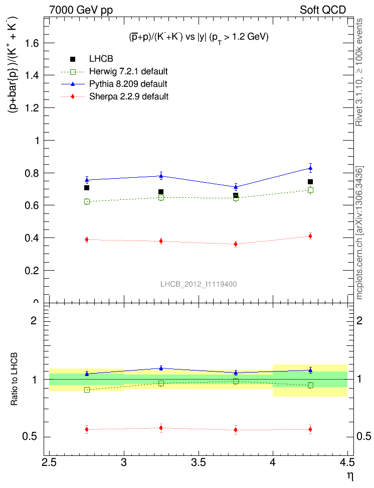 Soft QCD (inelastic) : Identified Particles : Ratios : (pbar+p)/(K-+K+) vs |y|