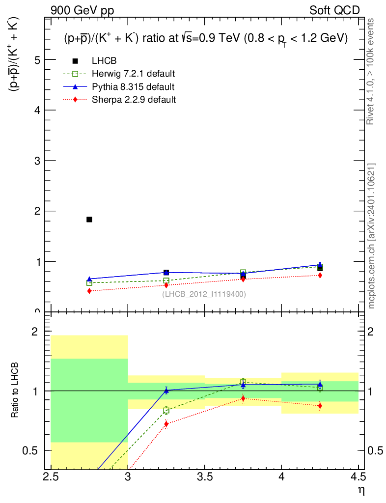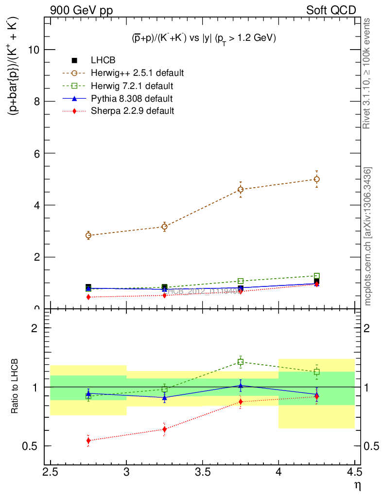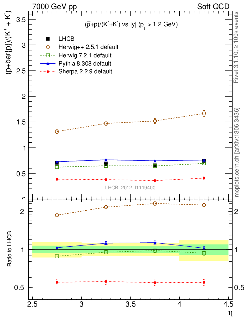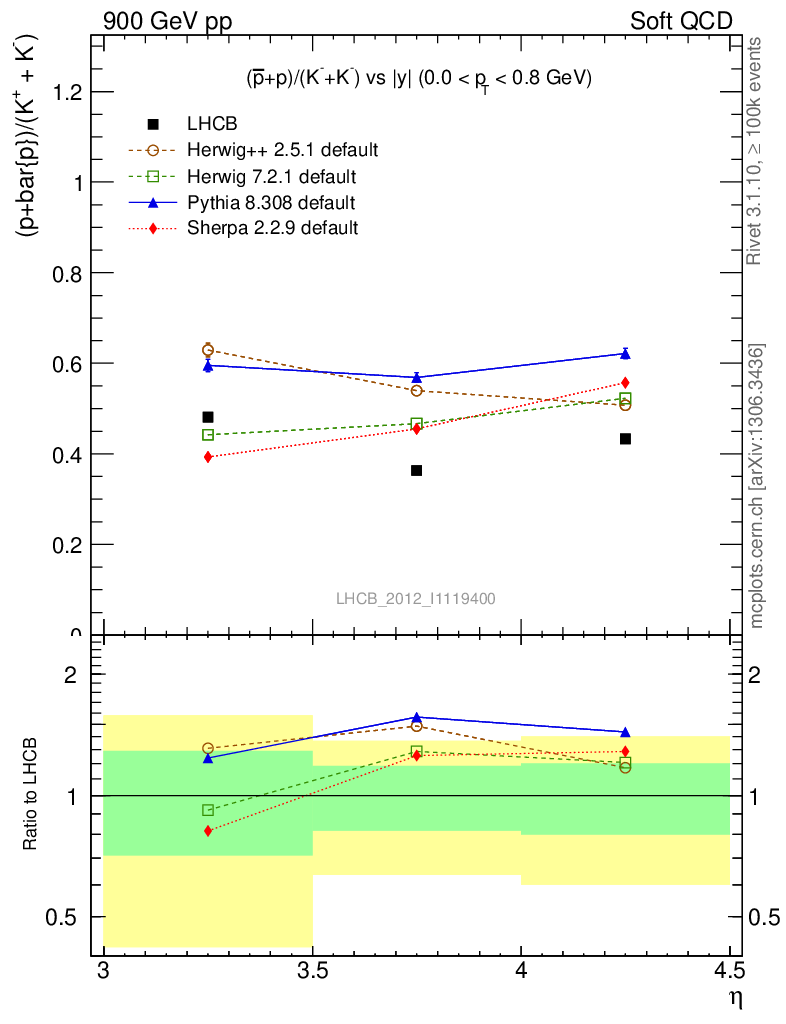Soft QCD (inelastic) : Identified Particles : Ratios : (pbar+p)/(K-+K+) vs |y|