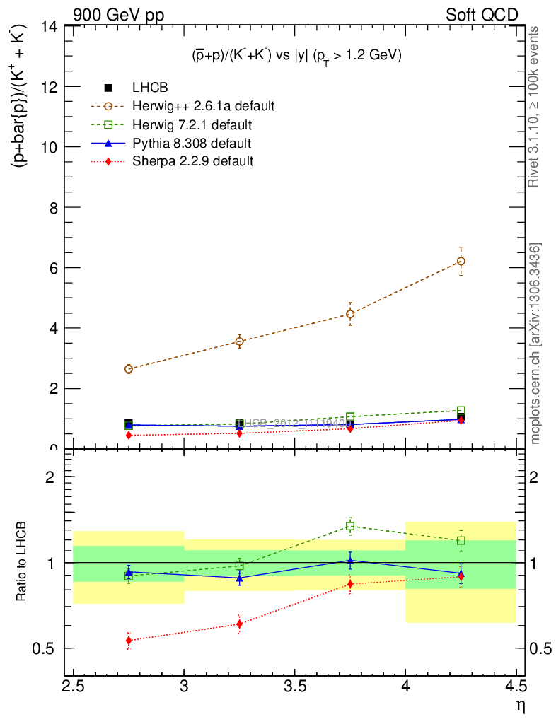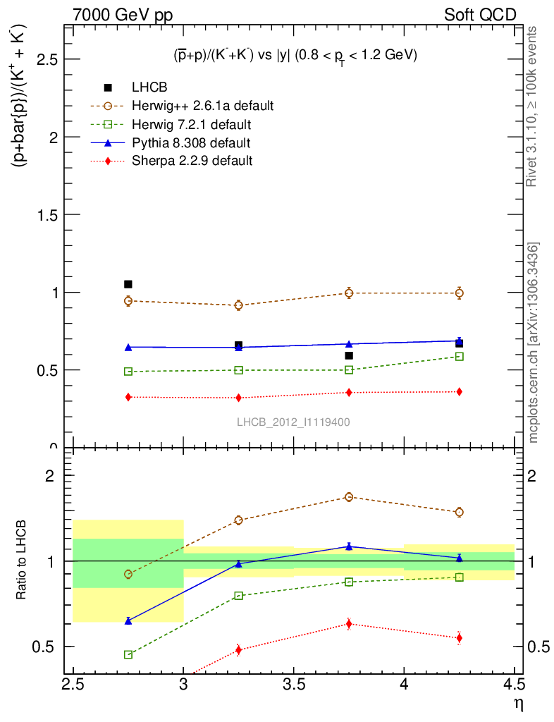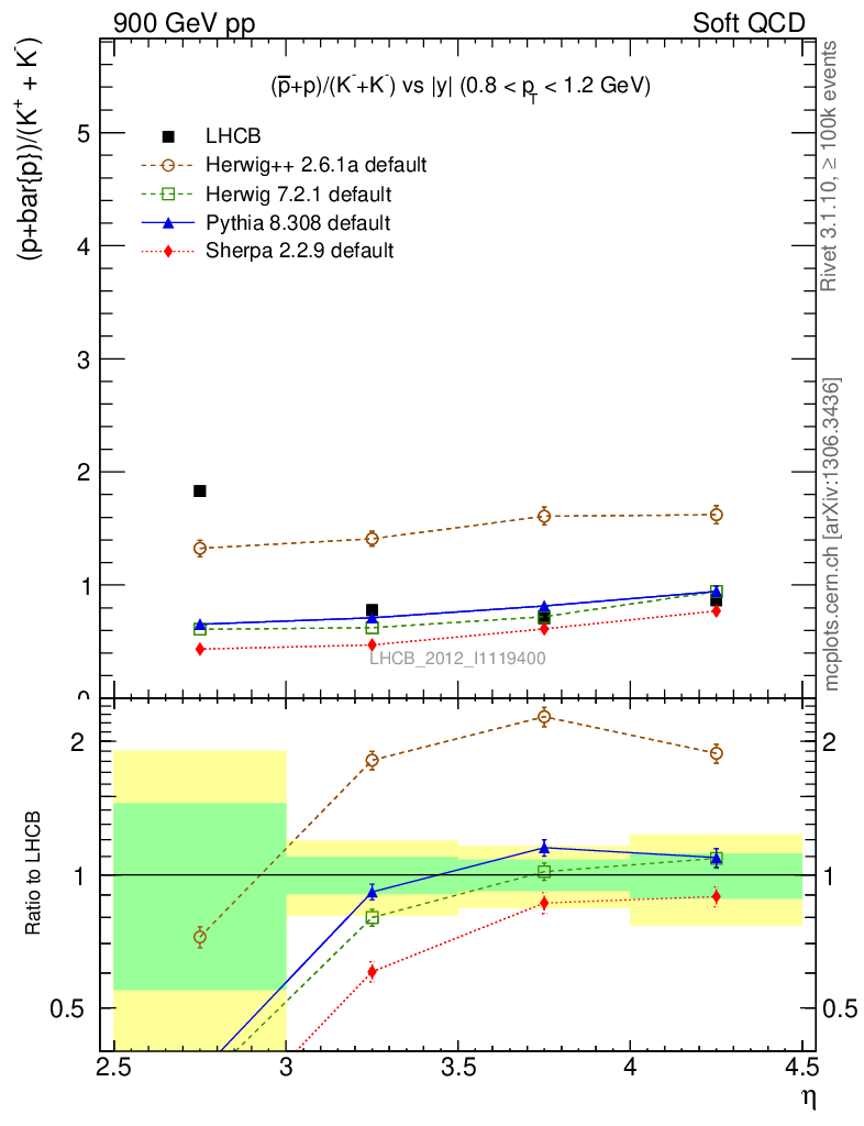 Soft QCD (inelastic) : Identified Particles : Ratios : (pbar+p)/(K-+K+) vs |y|