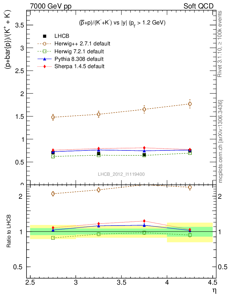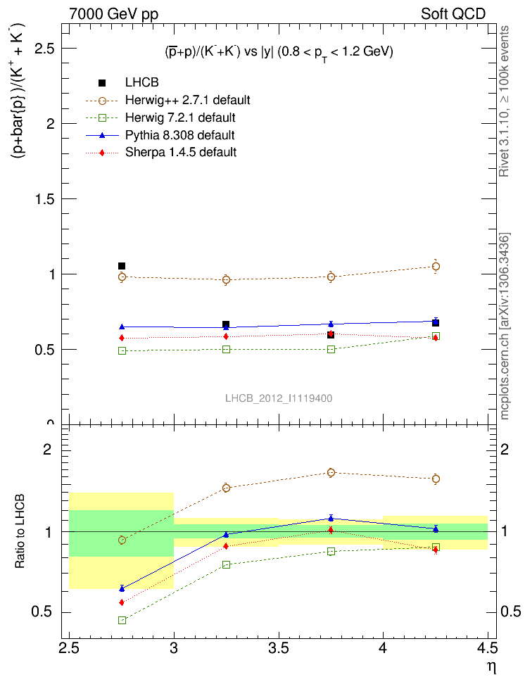 Soft QCD (inelastic) : Identified Particles : Ratios : (pbar+p)/(K-+K+) vs |y|