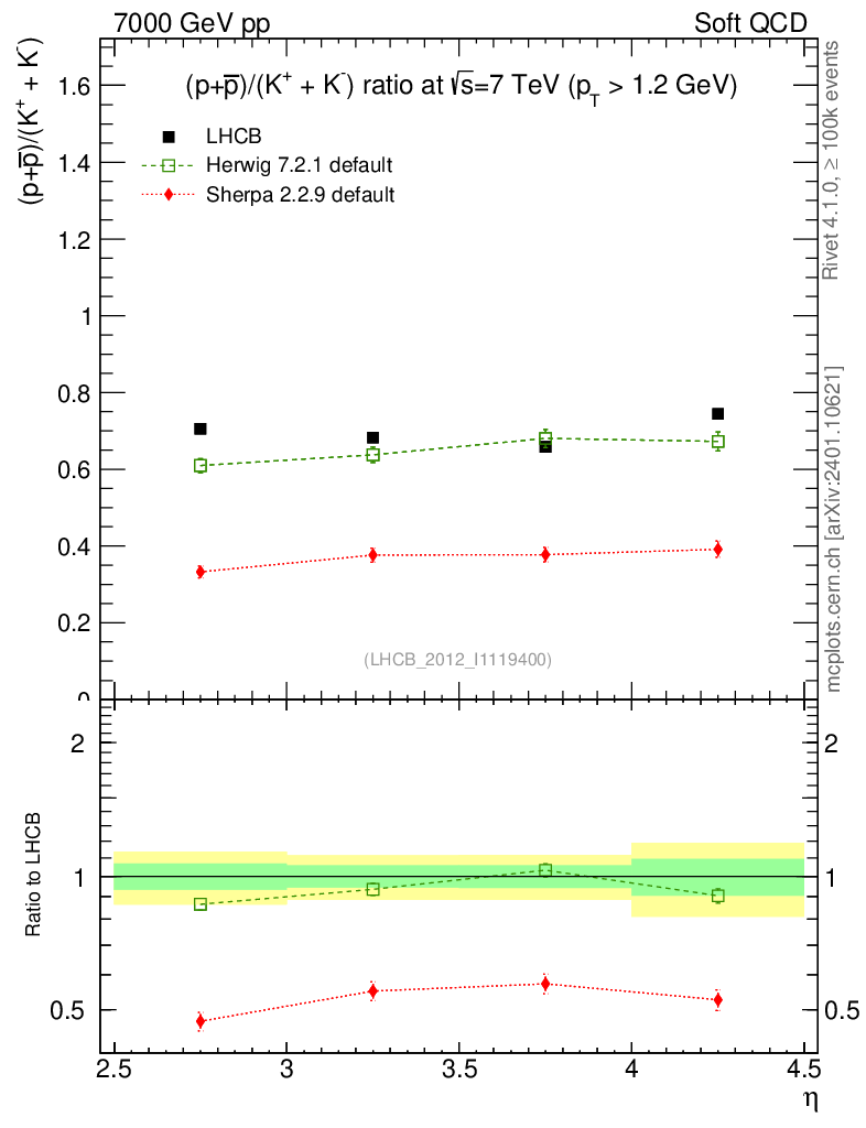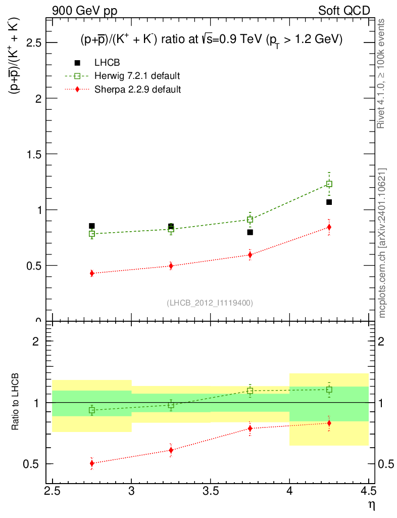 Soft QCD (inelastic) : Identified Particles : Ratios : (pbar+p)/(K-+K+) vs |y|