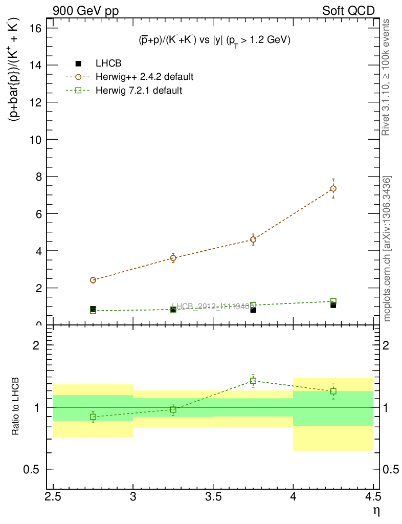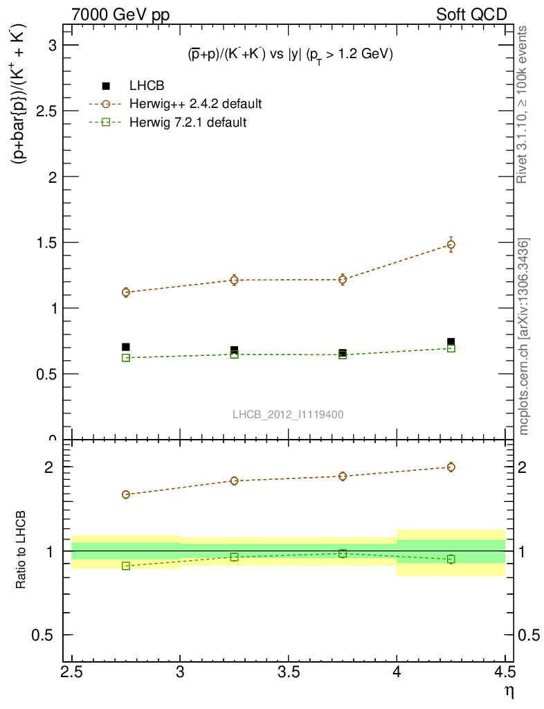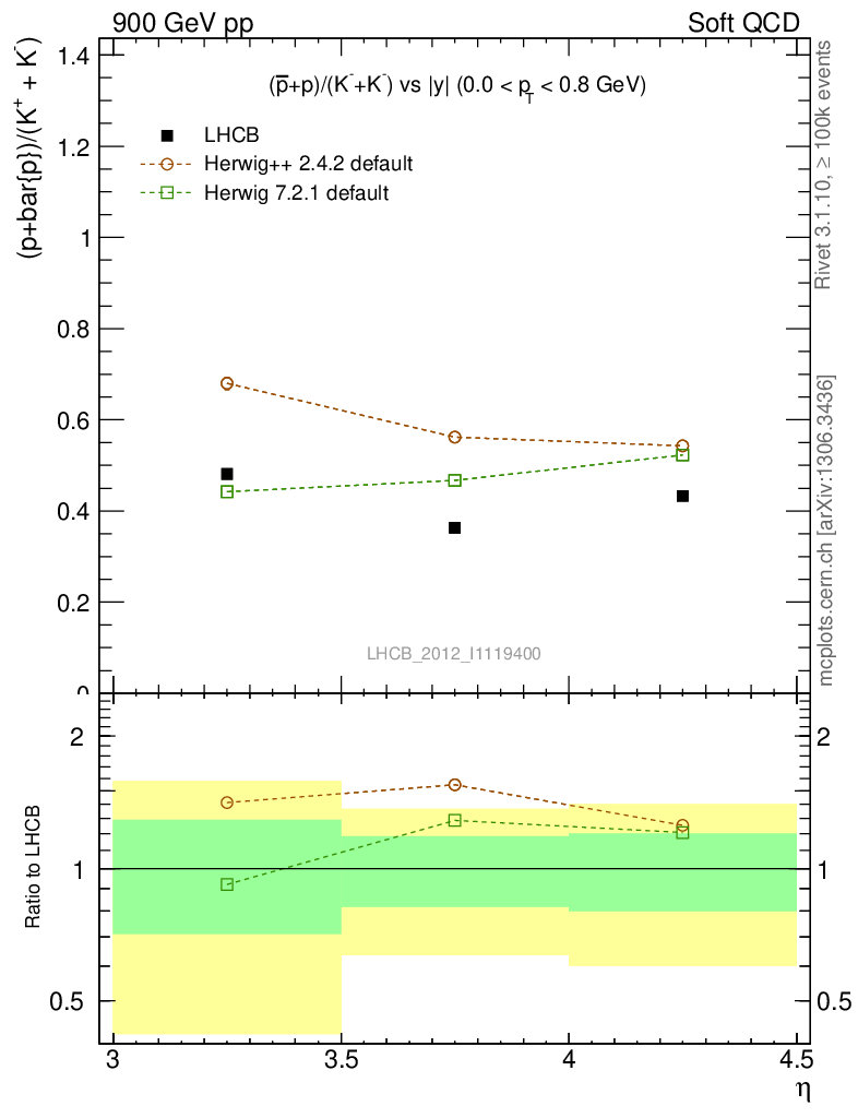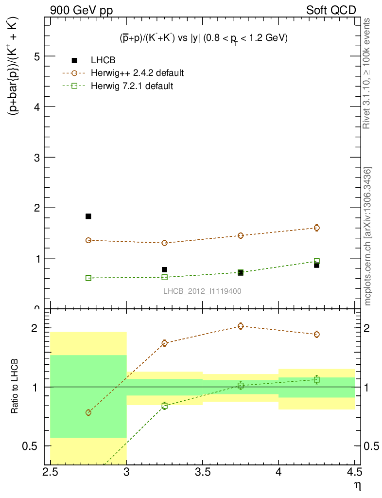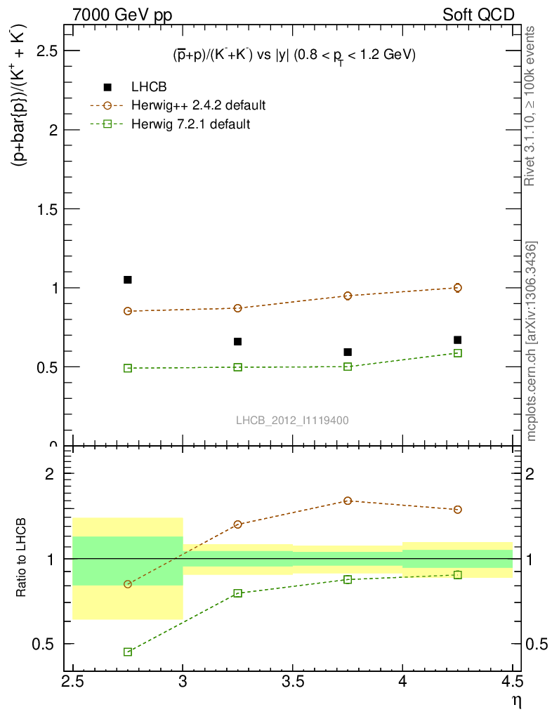 Soft QCD (inelastic) : Identified Particles : Ratios : (pbar+p)/(K-+K+) vs |y|
