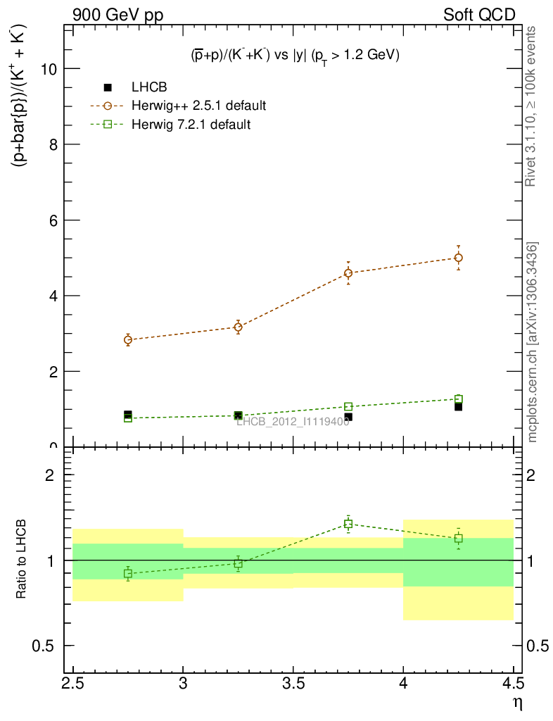 Soft QCD (inelastic) : Identified Particles : Ratios : (pbar+p)/(K-+K+) vs |y|