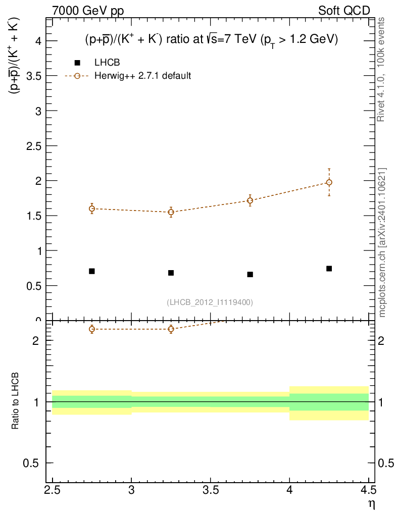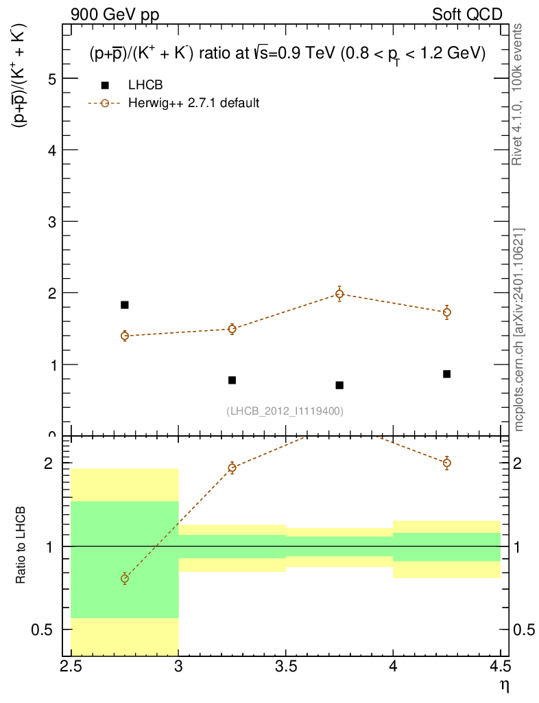 Soft QCD (inelastic) : Identified Particles : Ratios : (pbar+p)/(K-+K+) vs |y|