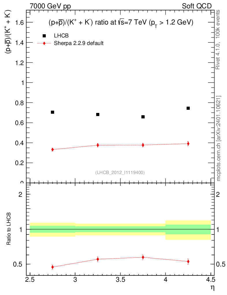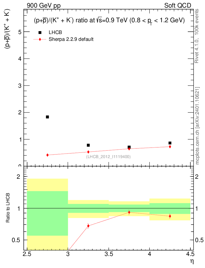 Soft QCD (inelastic) : Identified Particles : Ratios : (pbar+p)/(K-+K+) vs |y|