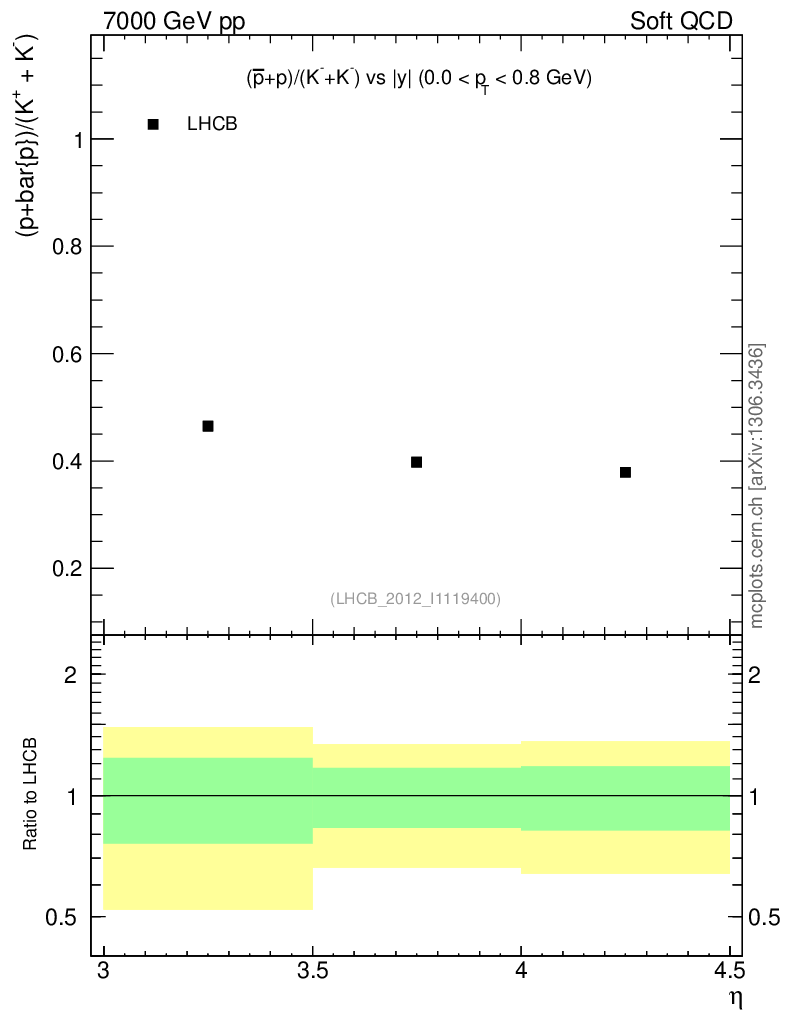 Soft QCD (inelastic) : Identified Particles : Ratios : (pbar+p)/(K-+K+) vs |y|
