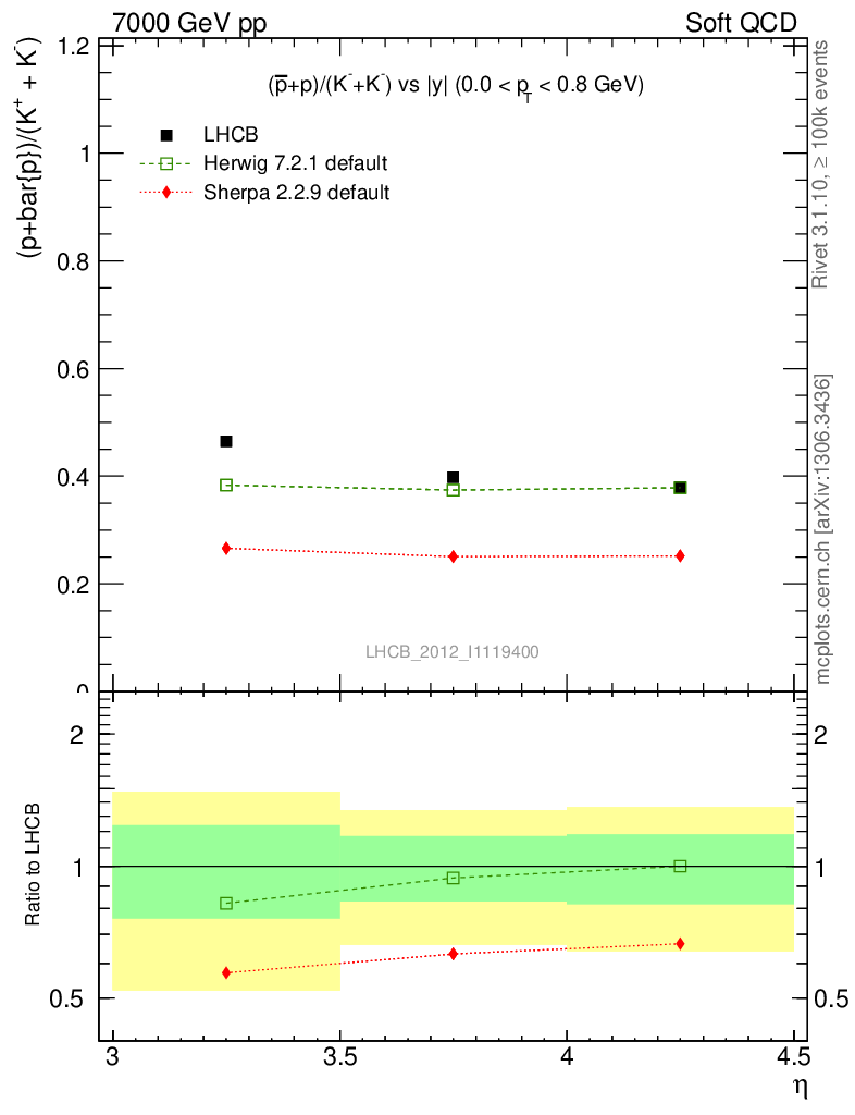 Soft QCD (inelastic) : Identified Particles : Ratios : (pbar+p)/(K-+K+) vs |y|