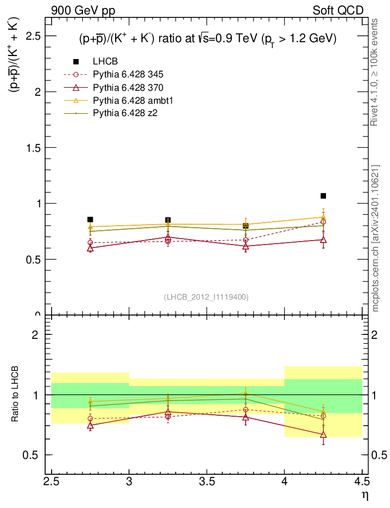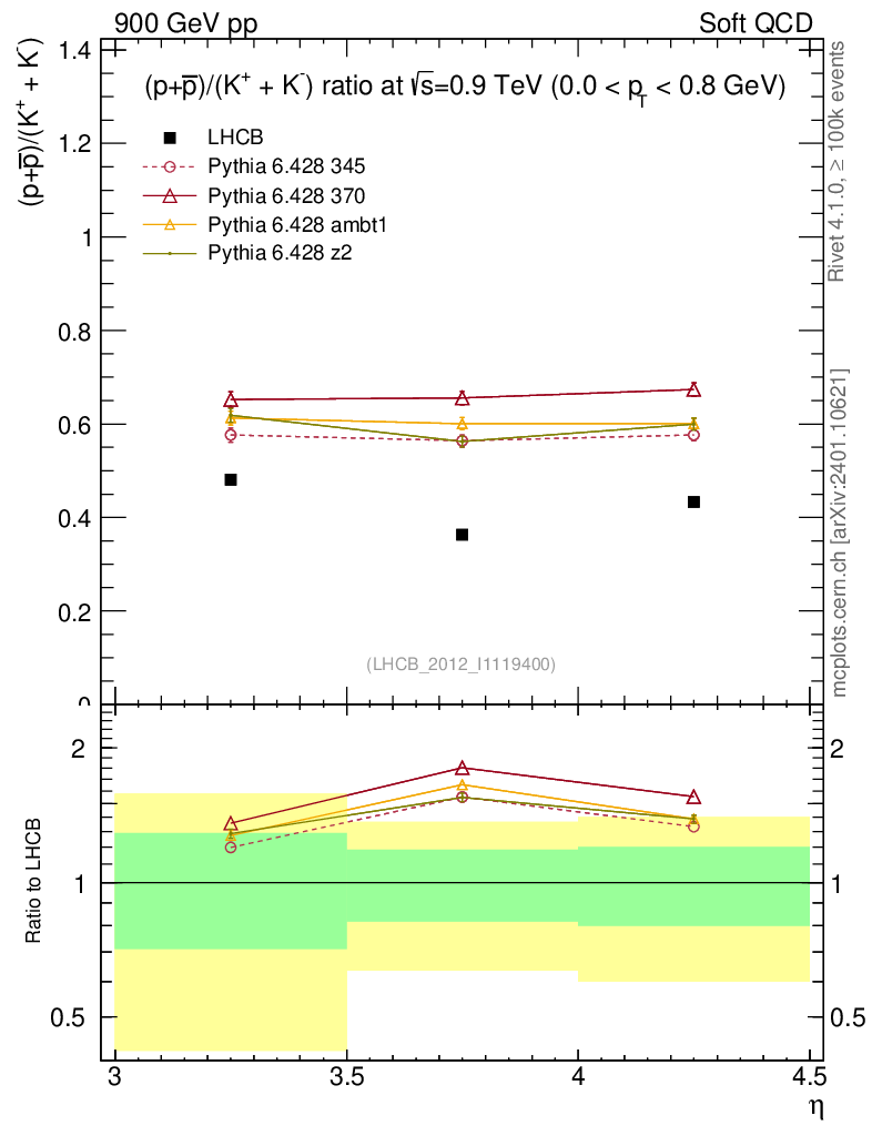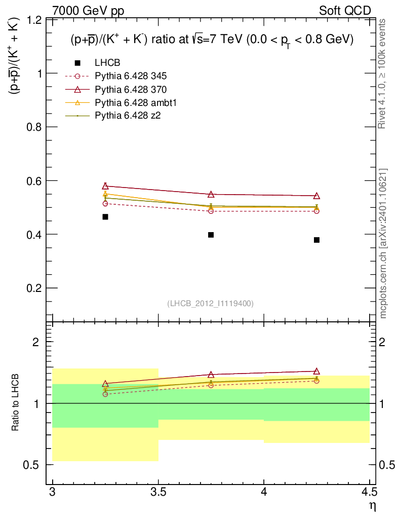 Soft QCD (inelastic) : Identified Particles : Ratios : (pbar+p)/(K-+K+) vs |y|