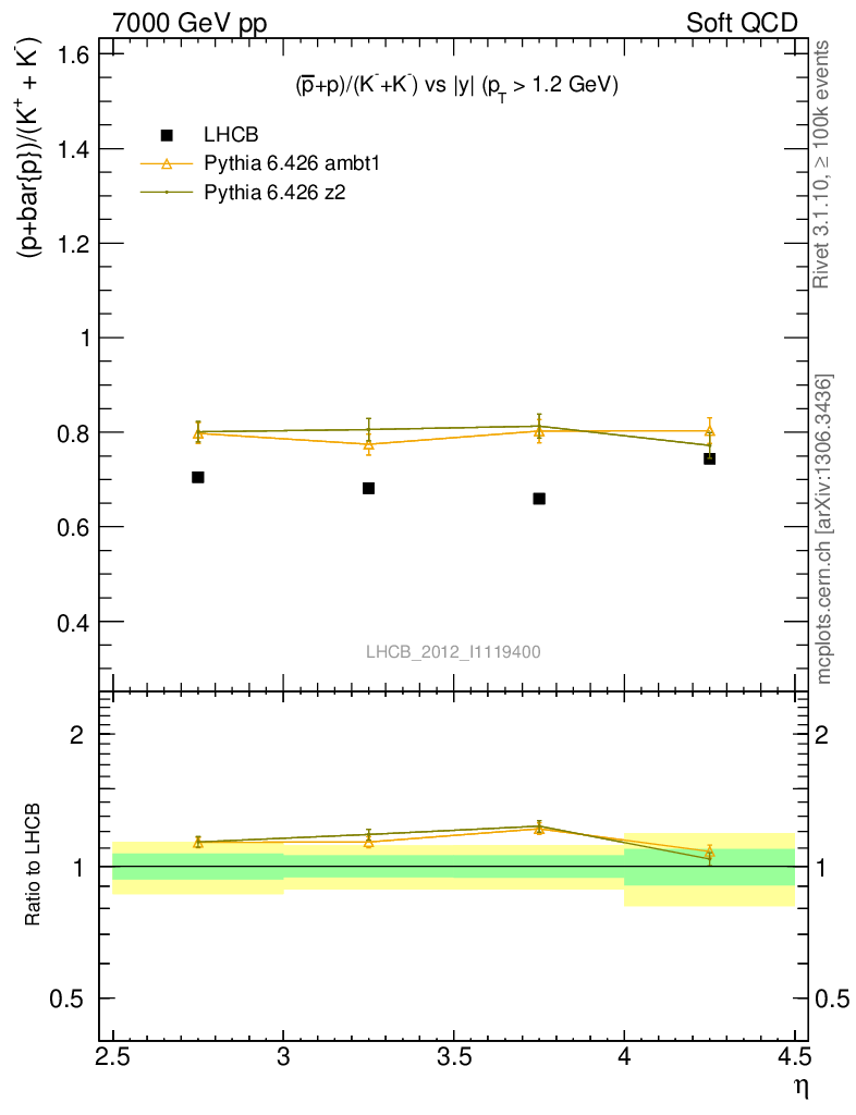 Soft QCD (inelastic) : Identified Particles : Ratios : (pbar+p)/(K-+K+) vs |y|