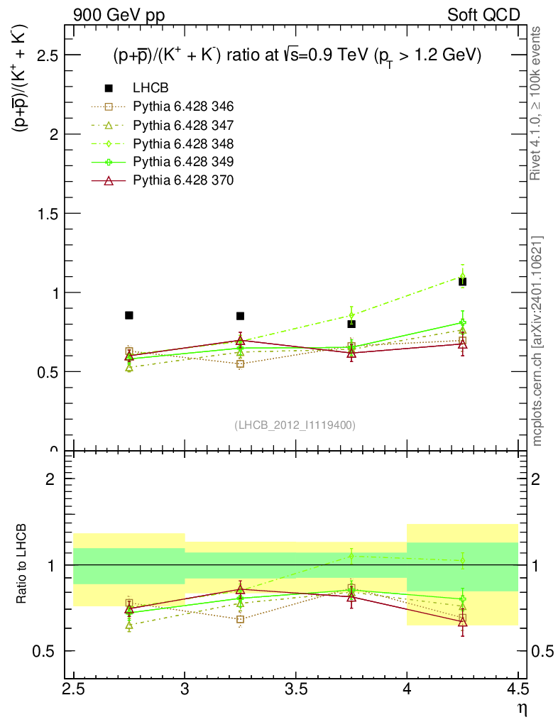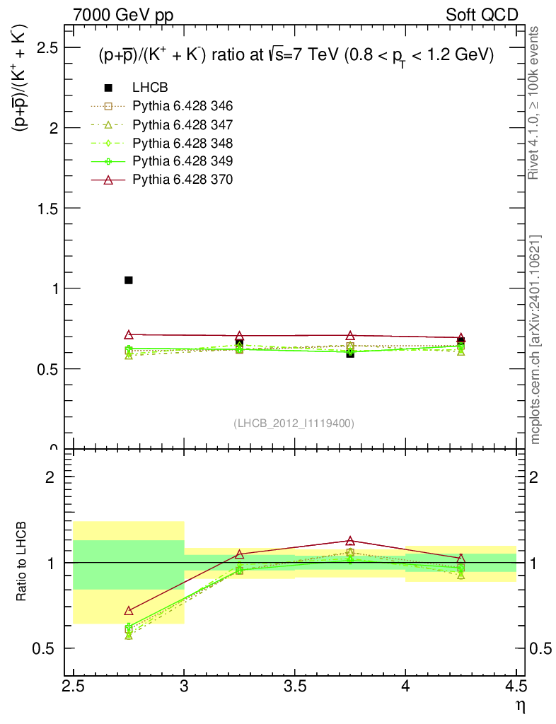 Soft QCD (inelastic) : Identified Particles : Ratios : (pbar+p)/(K-+K+) vs |y|