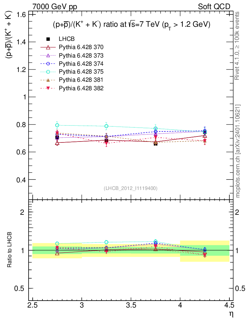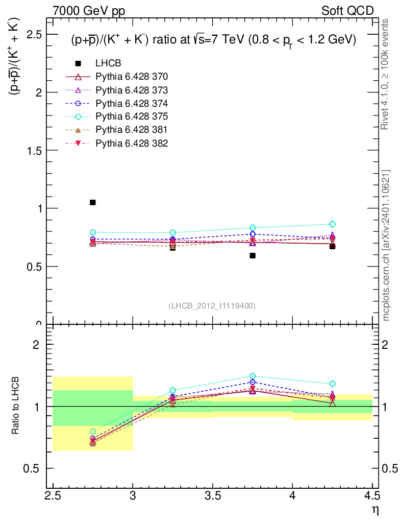 Soft QCD (inelastic) : Identified Particles : Ratios : (pbar+p)/(K-+K+) vs |y|