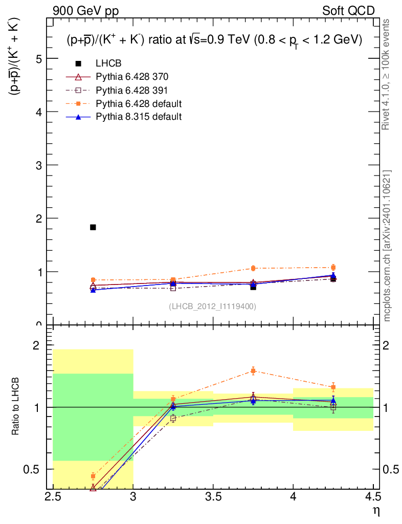 Soft QCD (inelastic) : Identified Particles : Ratios : (pbar+p)/(K-+K+) vs |y|