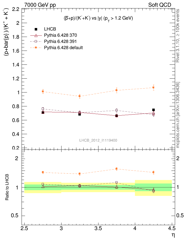 Soft QCD (inelastic) : Identified Particles : Ratios : (pbar+p)/(K-+K+) vs |y|