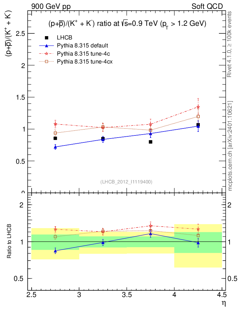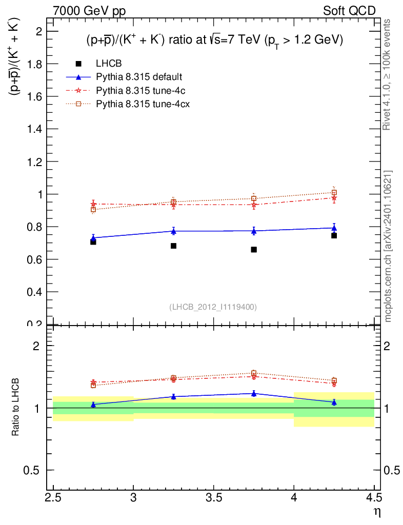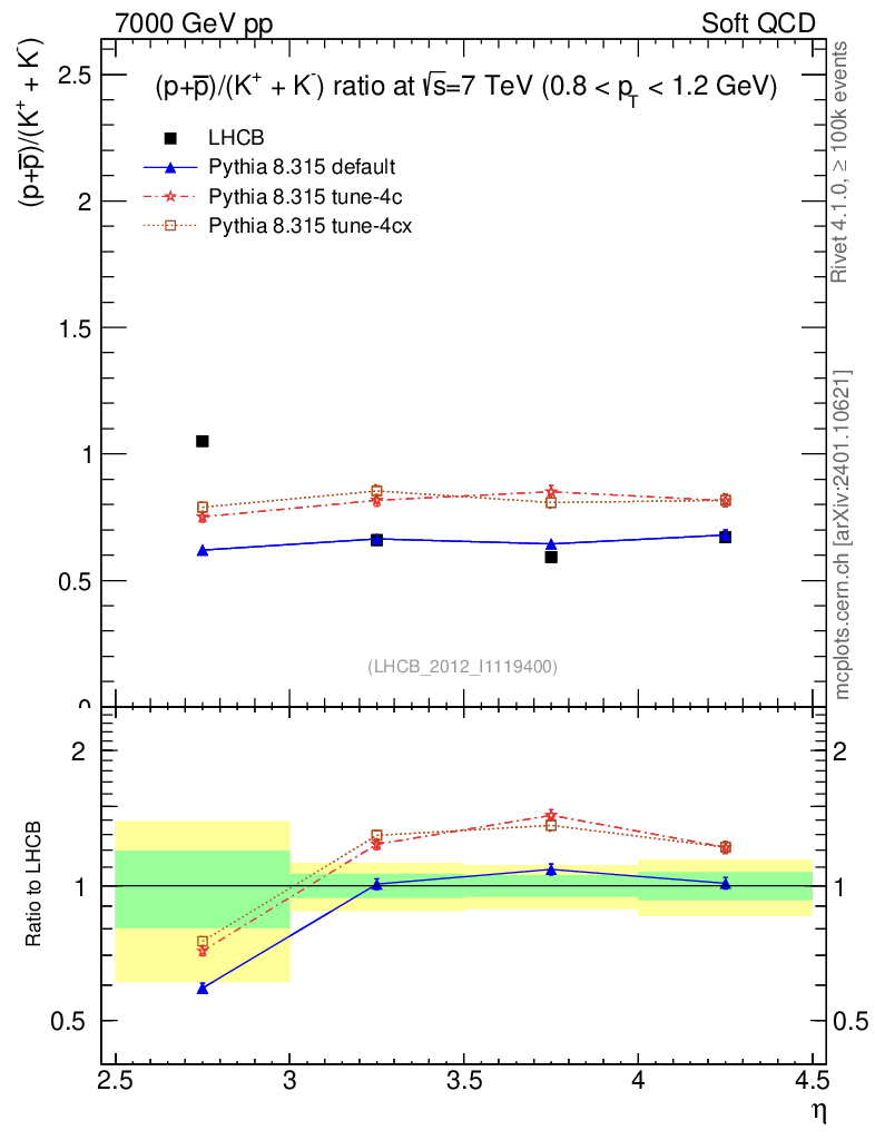 Soft QCD (inelastic) : Identified Particles : Ratios : (pbar+p)/(K-+K+) vs |y|