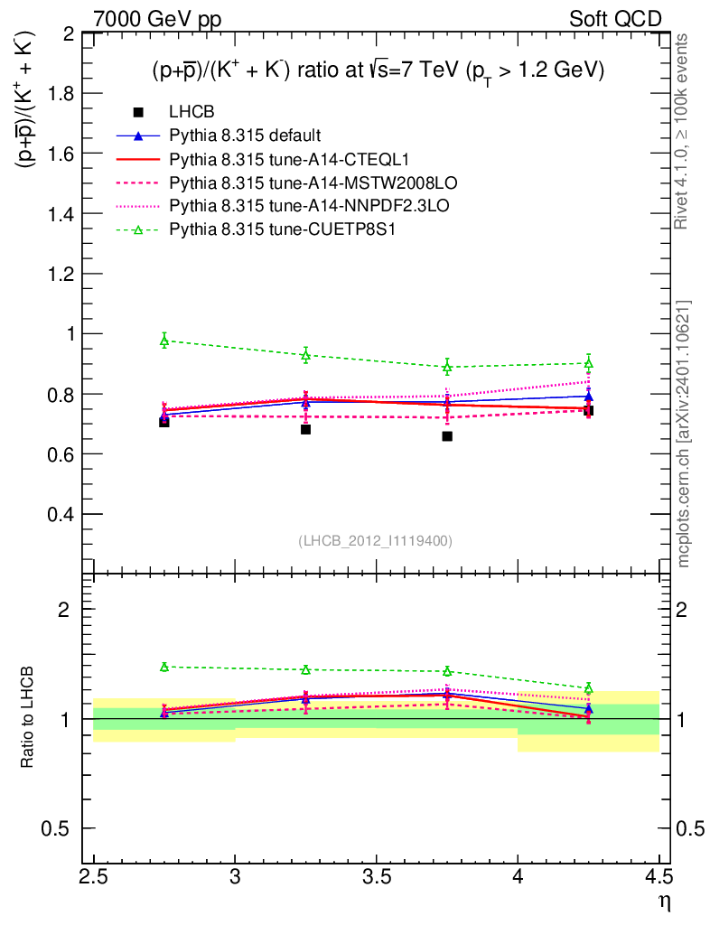 Soft QCD (inelastic) : Identified Particles : Ratios : (pbar+p)/(K-+K+) vs |y|