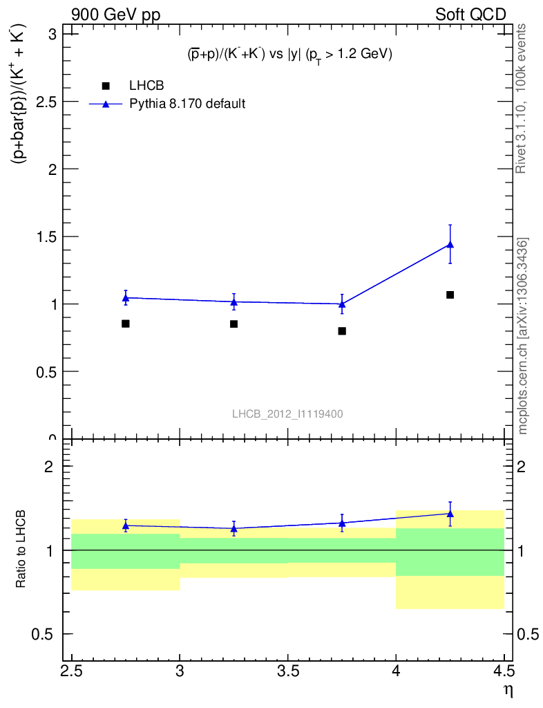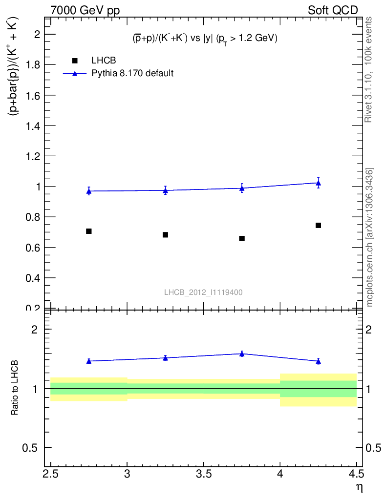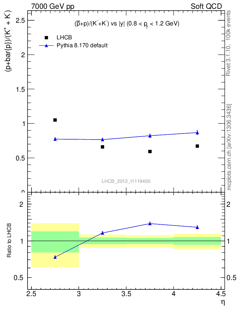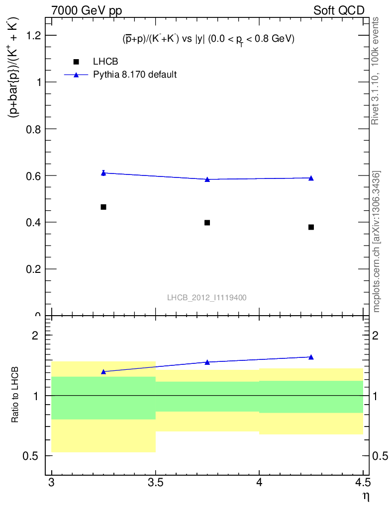 Soft QCD (inelastic) : Identified Particles : Ratios : (pbar+p)/(K-+K+) vs |y|
