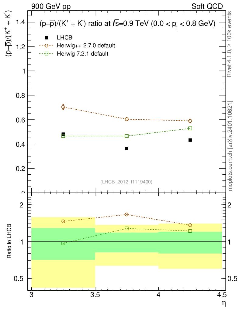 Soft QCD (inelastic) : Identified Particles : Ratios : (pbar+p)/(K-+K+) vs |y|