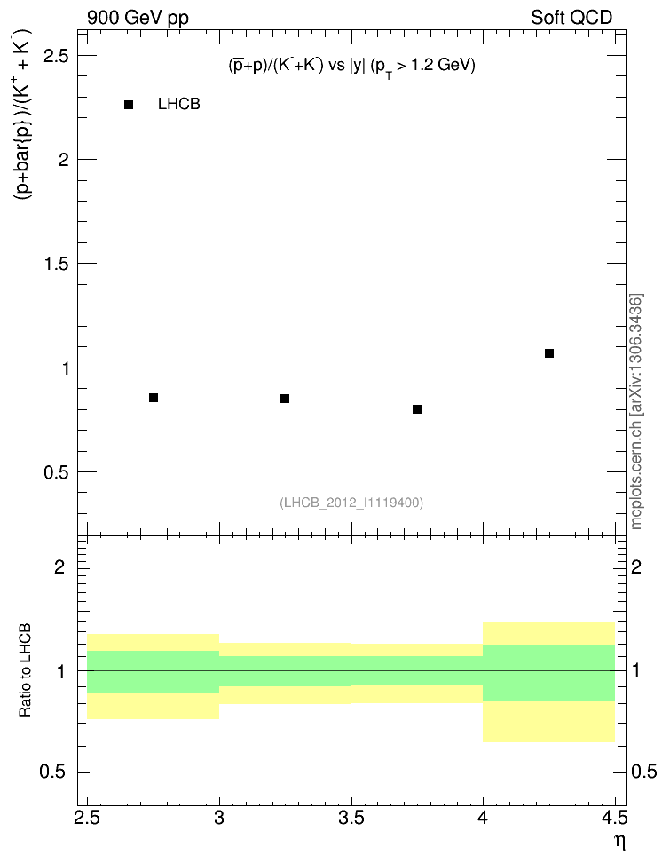 Soft QCD (inelastic) : Identified Particles : Ratios : (pbar+p)/(K-+K+) vs |y|