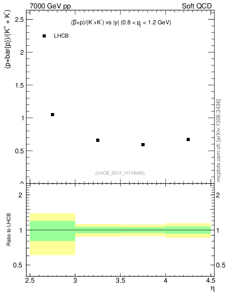 Soft QCD (inelastic) : Identified Particles : Ratios : (pbar+p)/(K-+K+) vs |y|