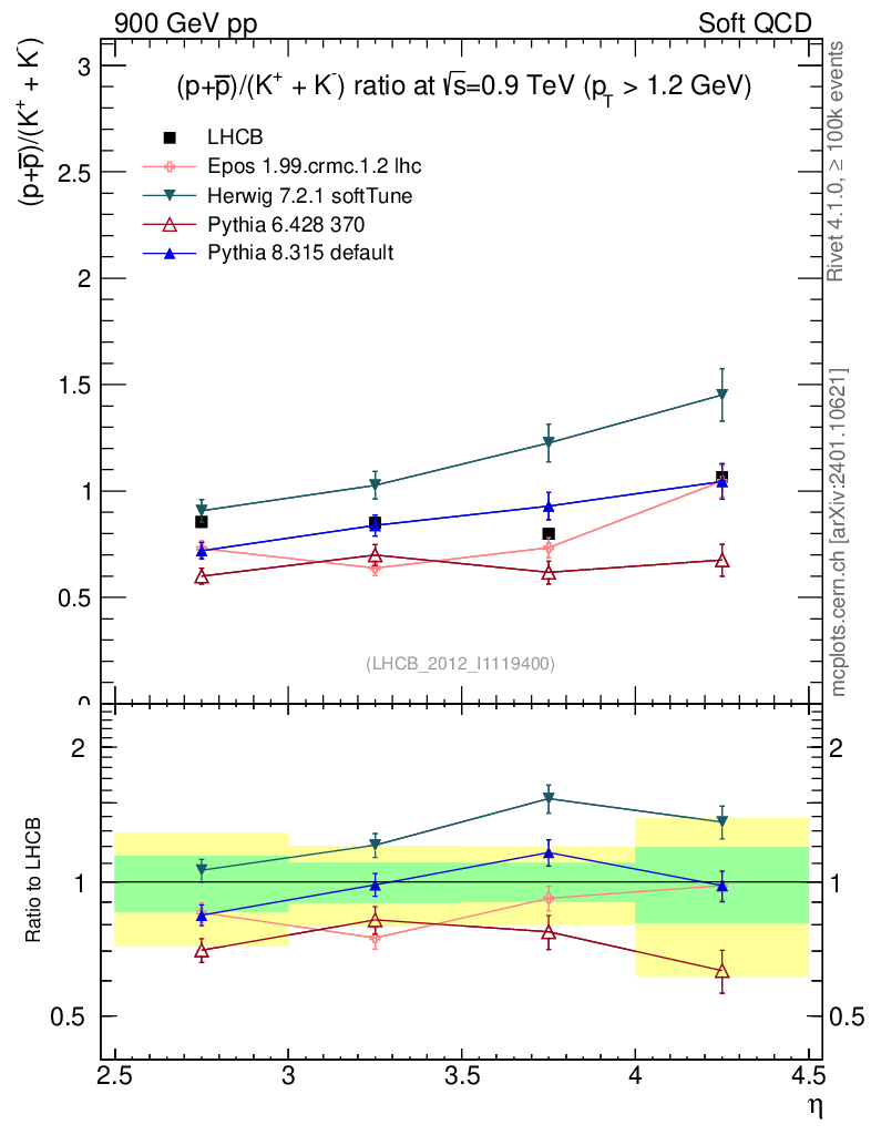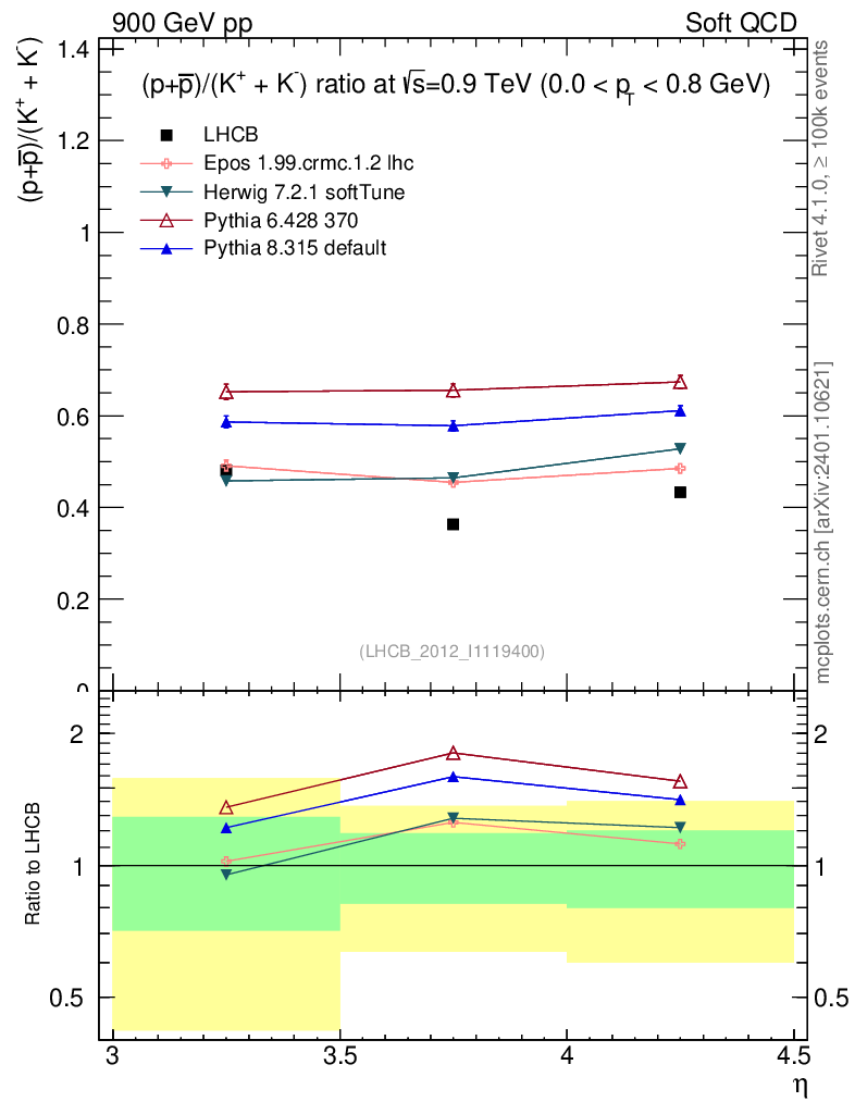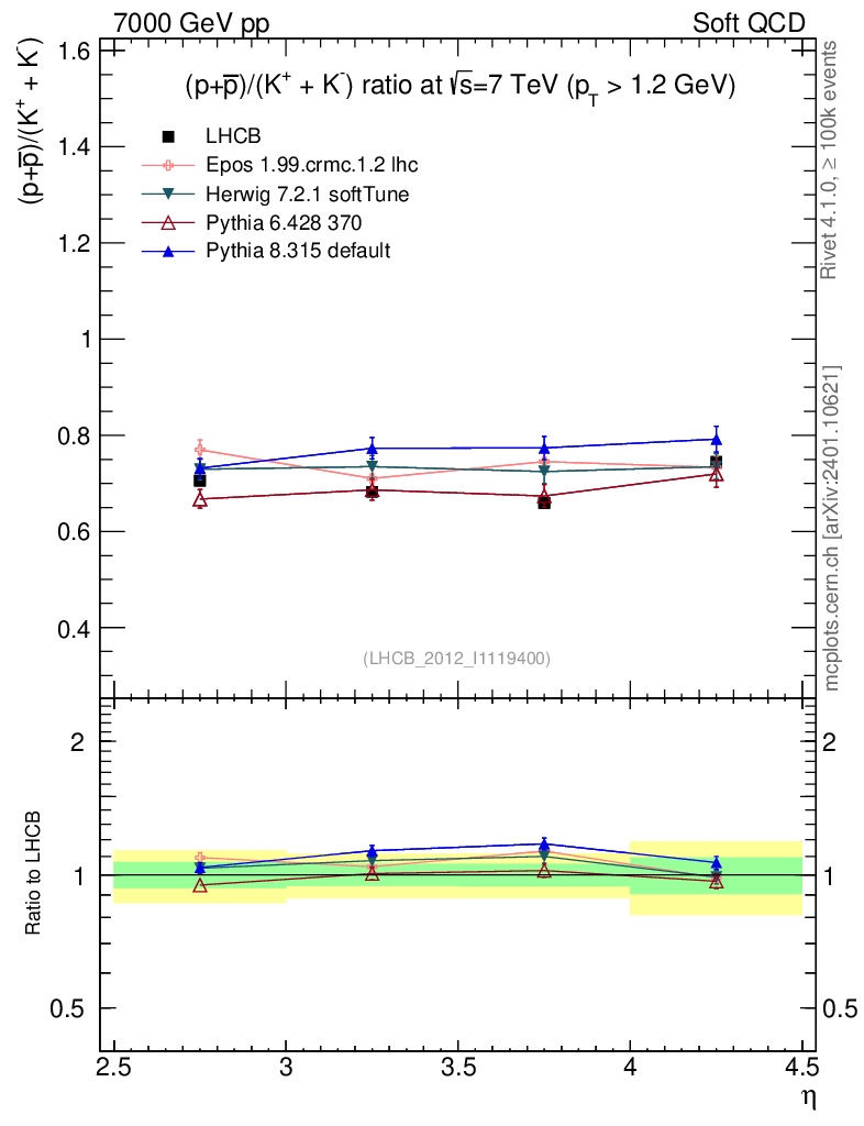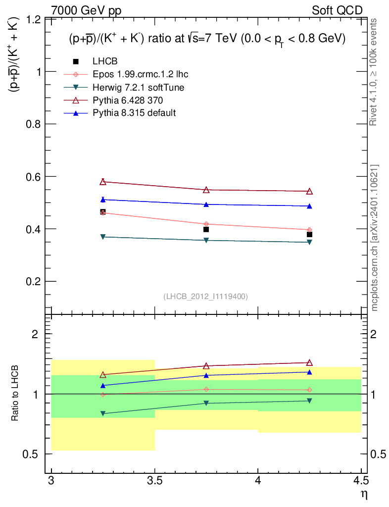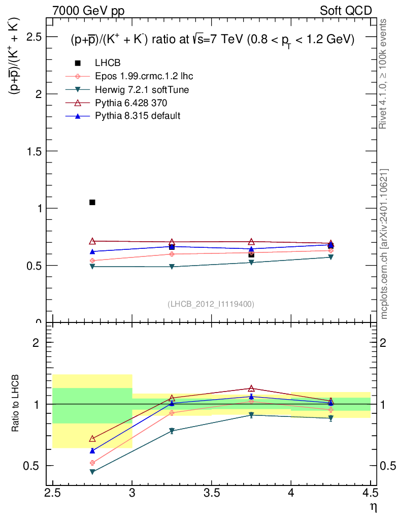 Soft QCD (inelastic) : Identified Particles : Ratios : (pbar+p)/(K-+K+) vs |y|