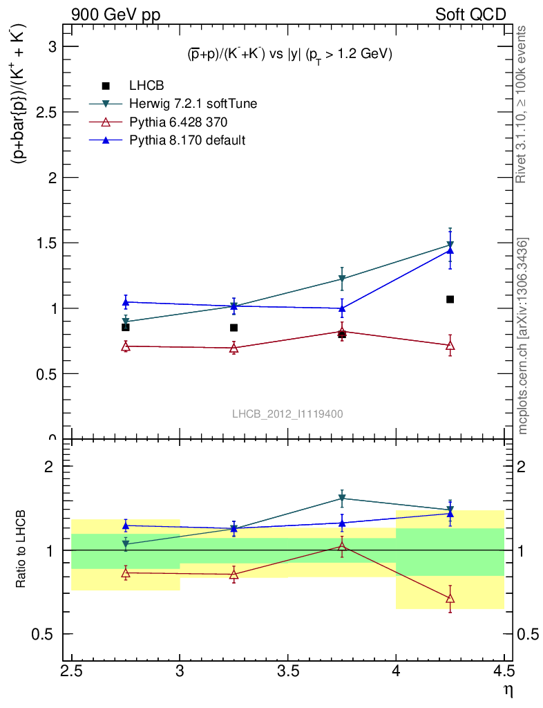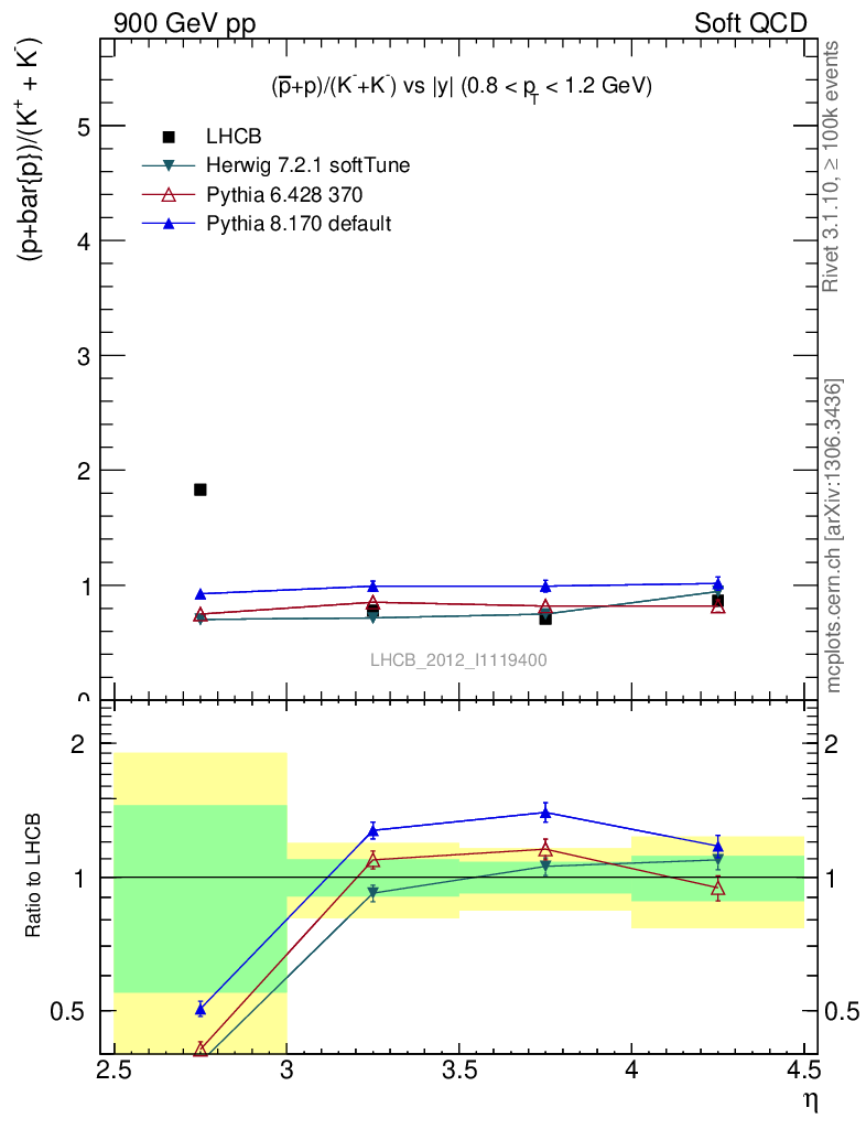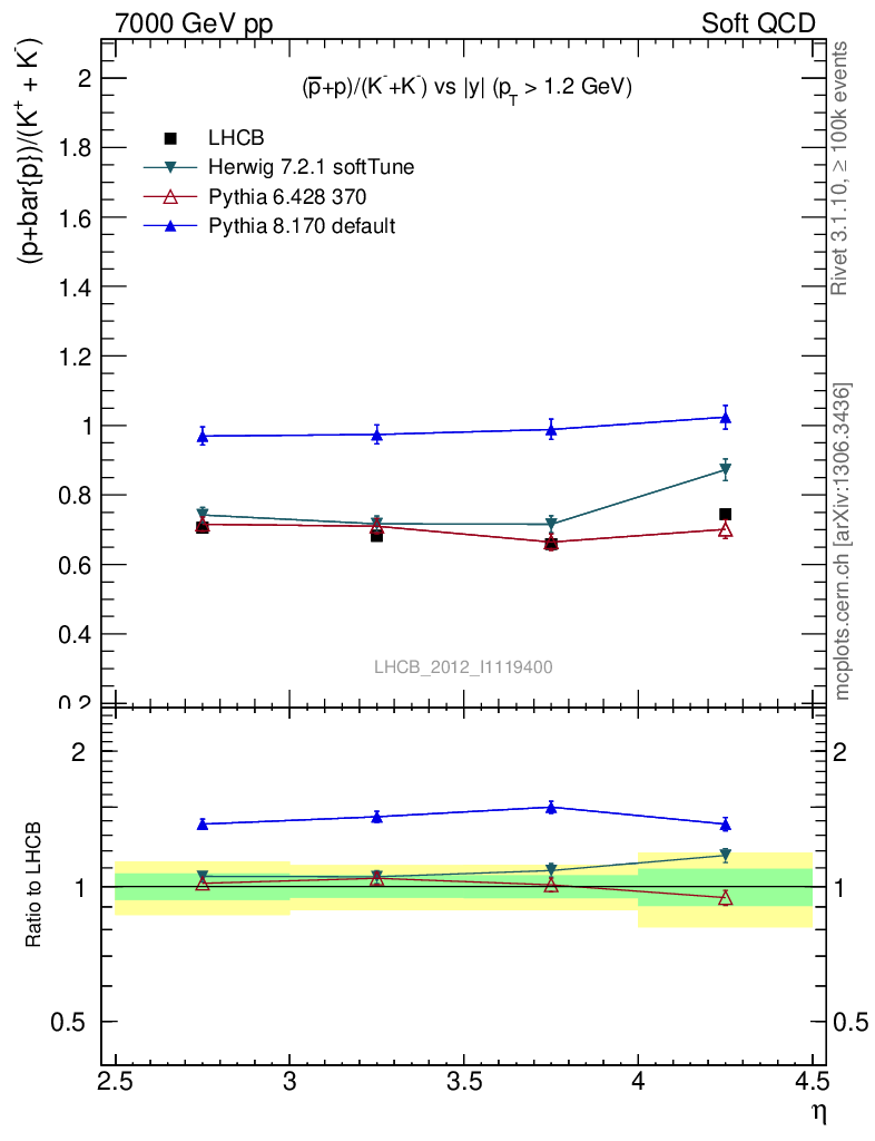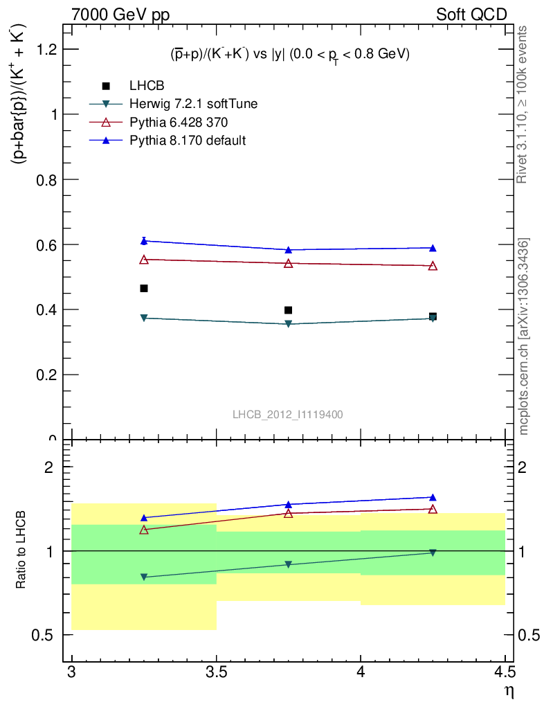 Soft QCD (inelastic) : Identified Particles : Ratios : (pbar+p)/(K-+K+) vs |y|