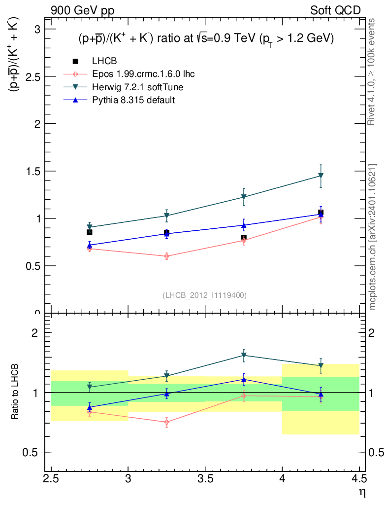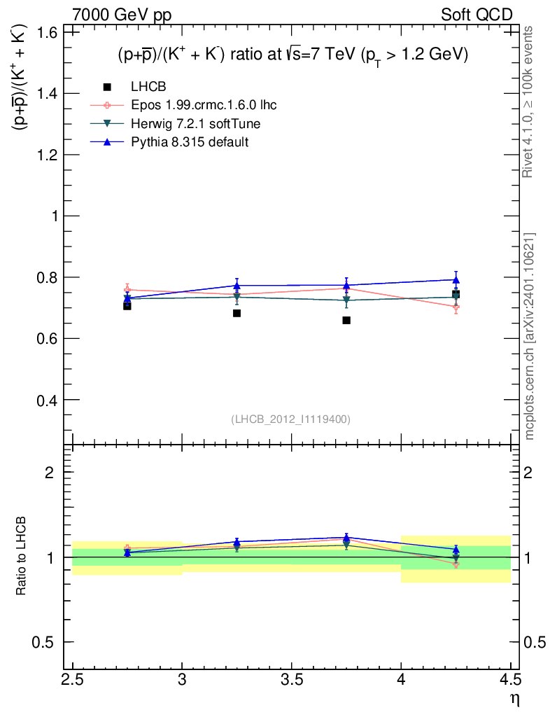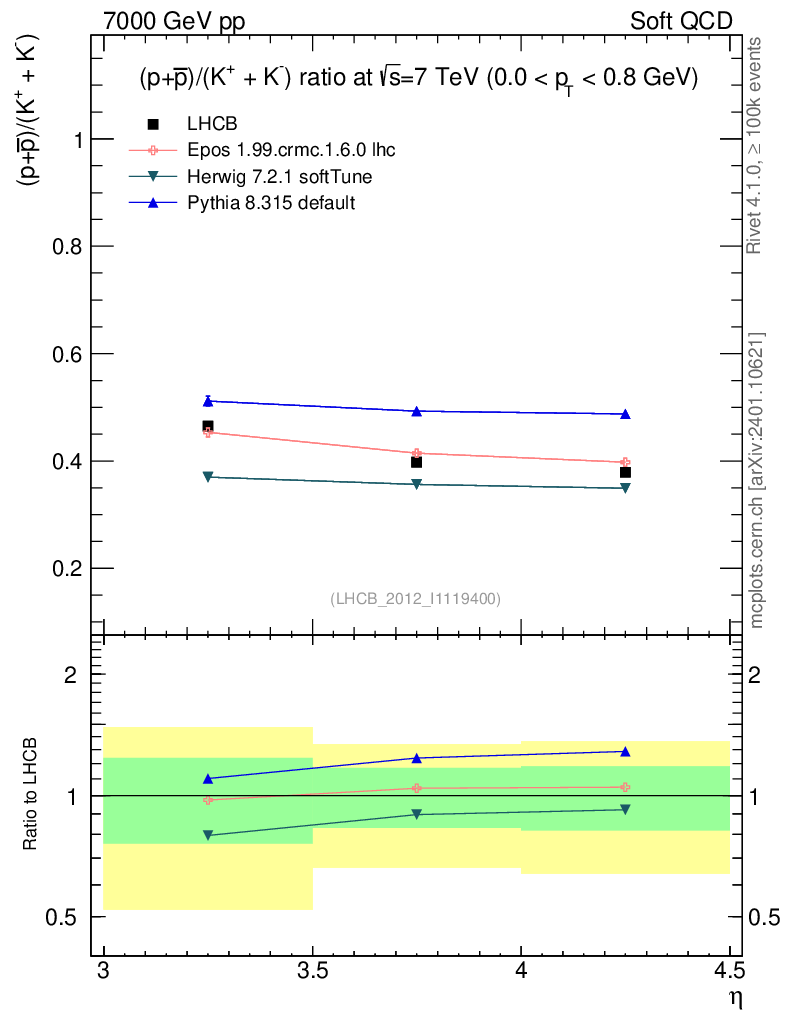 Soft QCD (inelastic) : Identified Particles : Ratios : (pbar+p)/(K-+K+) vs |y|