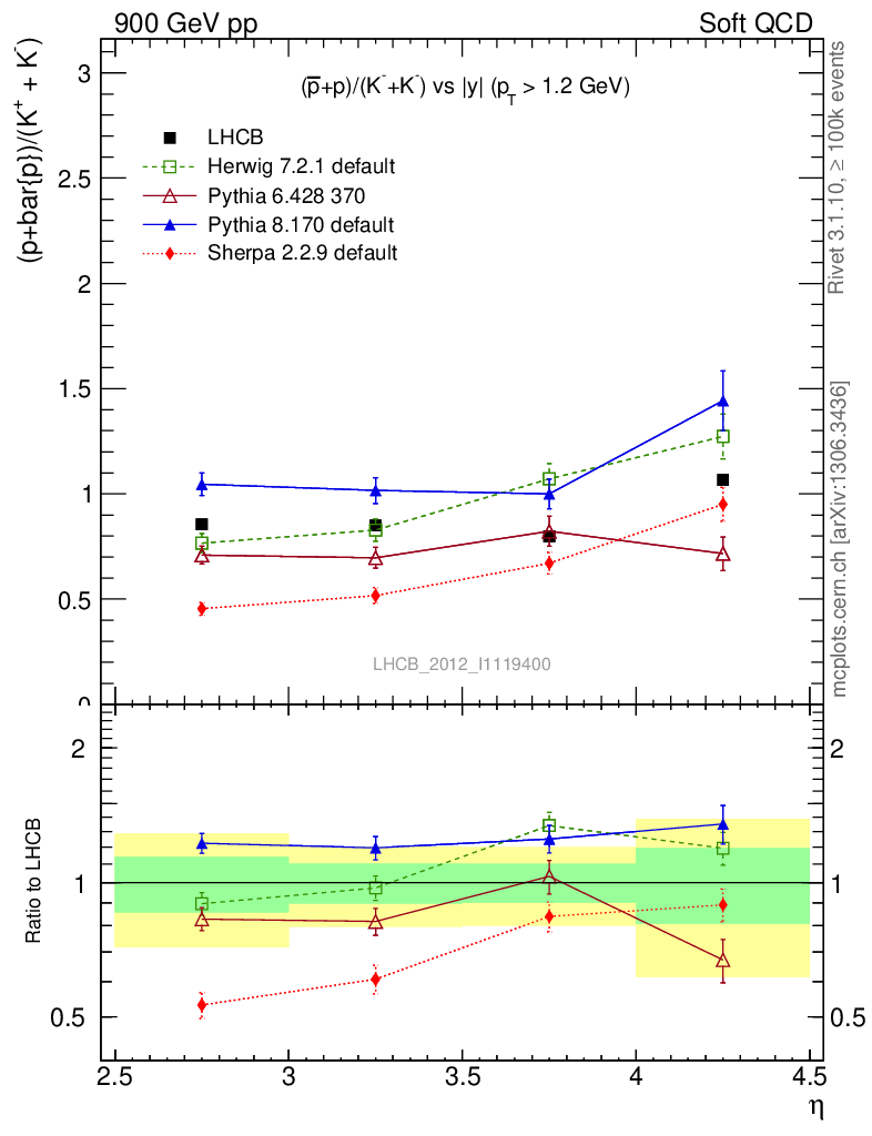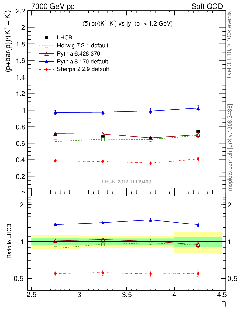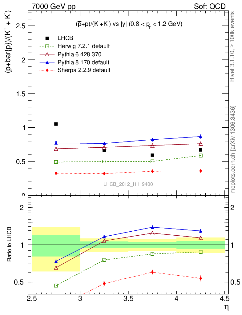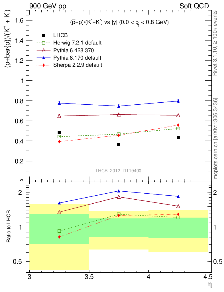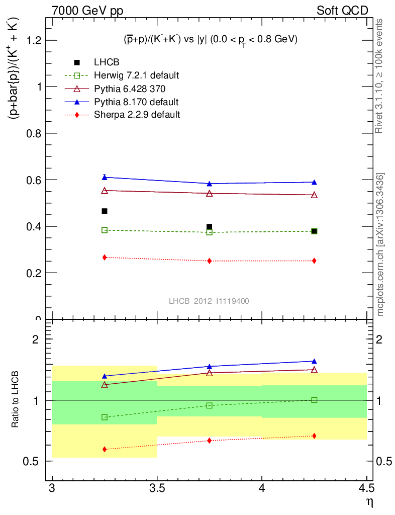 Soft QCD (inelastic) : Identified Particles : Ratios : (pbar+p)/(K-+K+) vs |y|