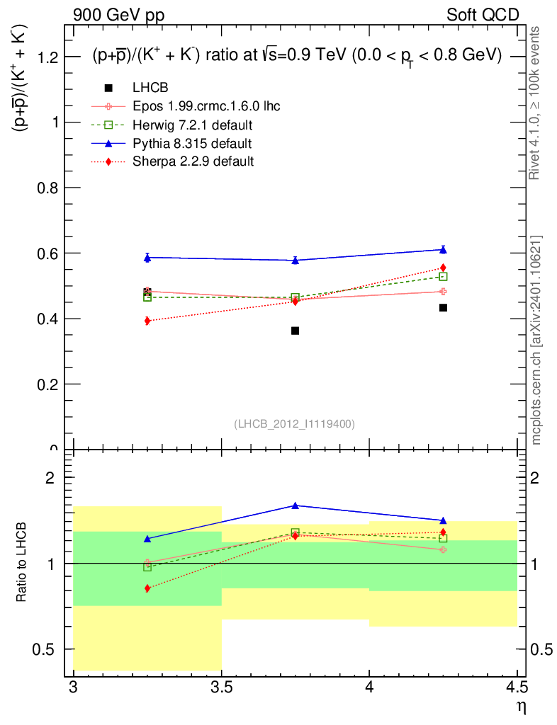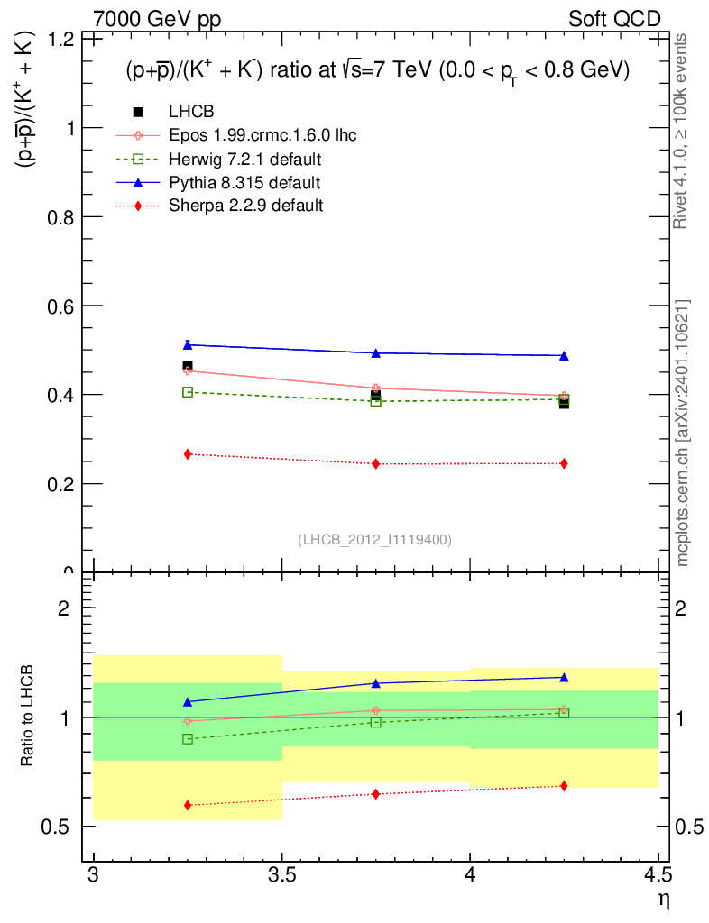 Soft QCD (inelastic) : Identified Particles : Ratios : (pbar+p)/(K-+K+) vs |y|