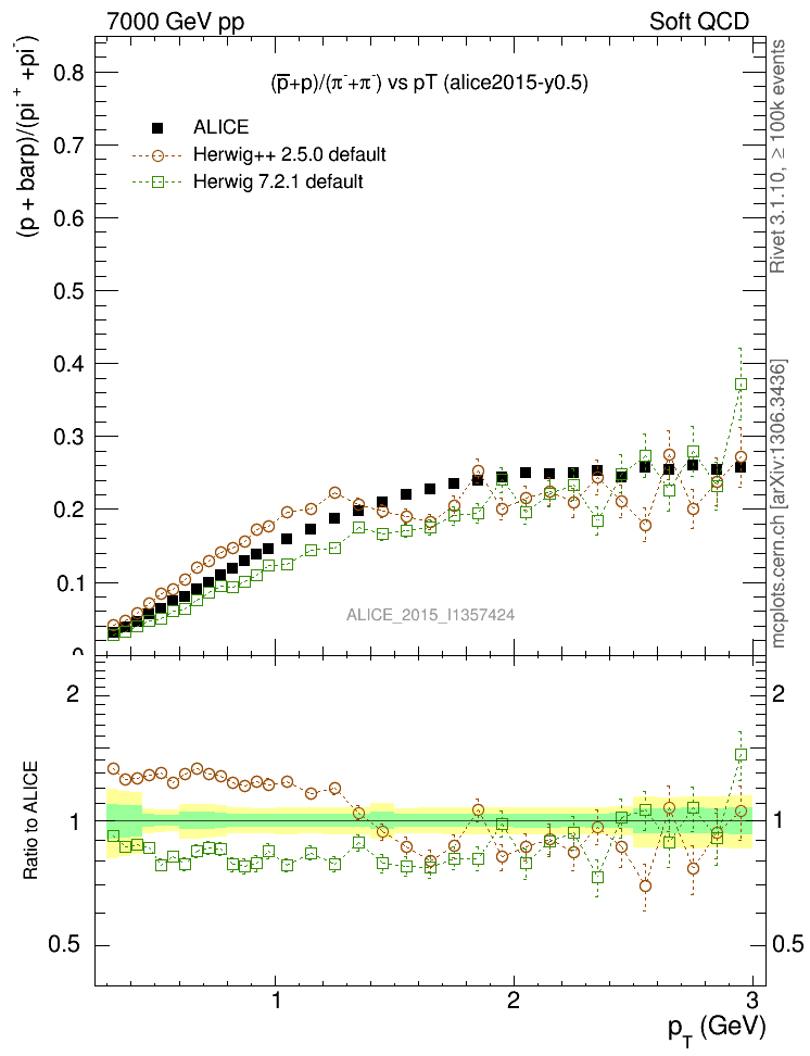 Soft QCD (inelastic) : Identified Particles : Ratios : (pbar+p)/(π-+π+) vs pT