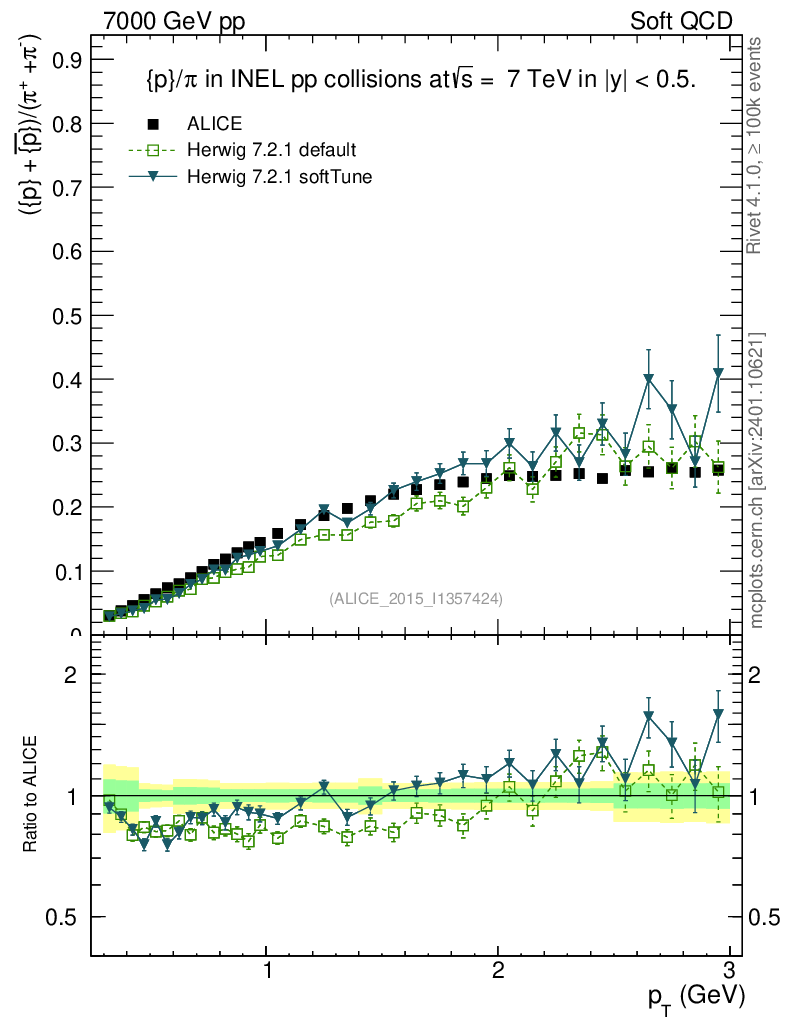 Soft QCD (inelastic) : Identified Particles : Ratios : (pbar+p)/(π-+π+) vs pT