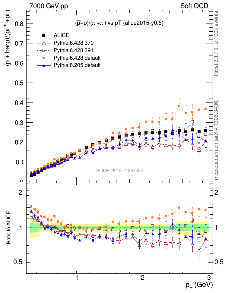 Soft QCD (inelastic) : Identified Particles : Ratios : (pbar+p)/(π-+π+) vs pT
