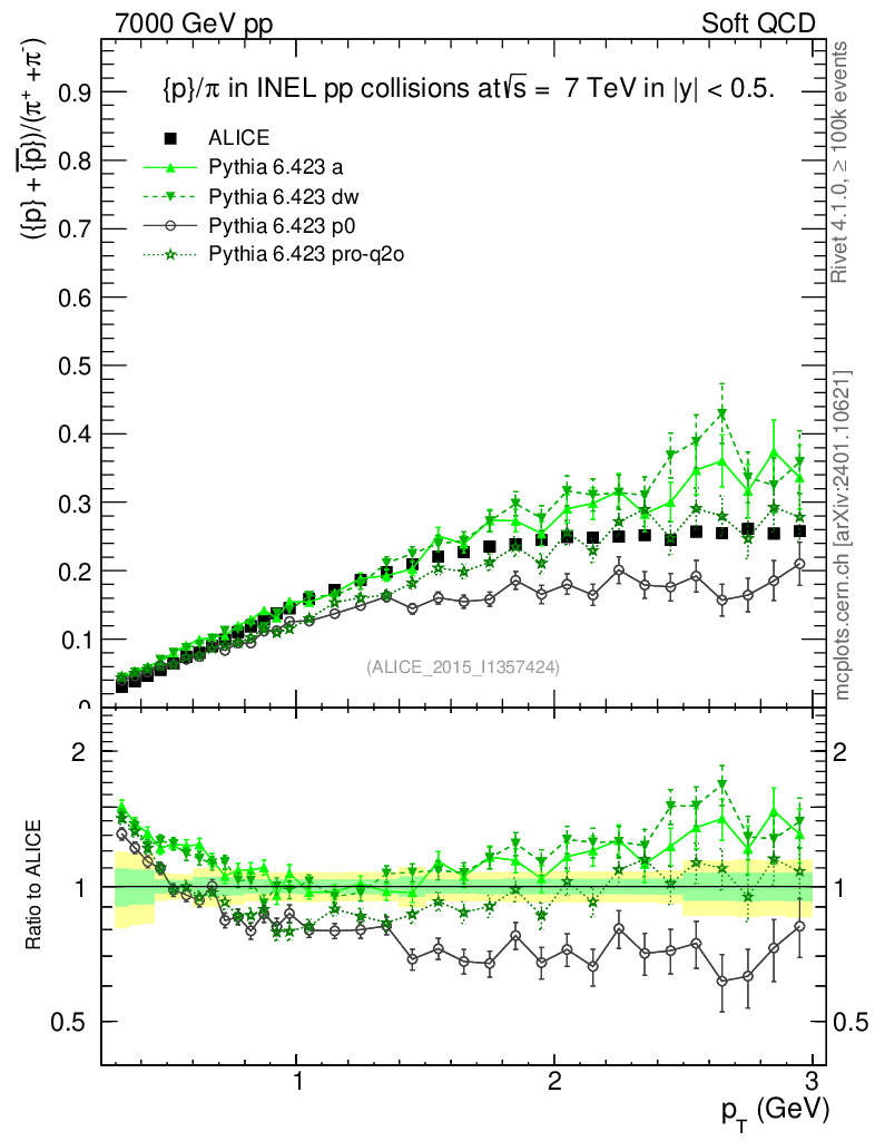 Soft QCD (inelastic) : Identified Particles : Ratios : (pbar+p)/(π-+π+) vs pT